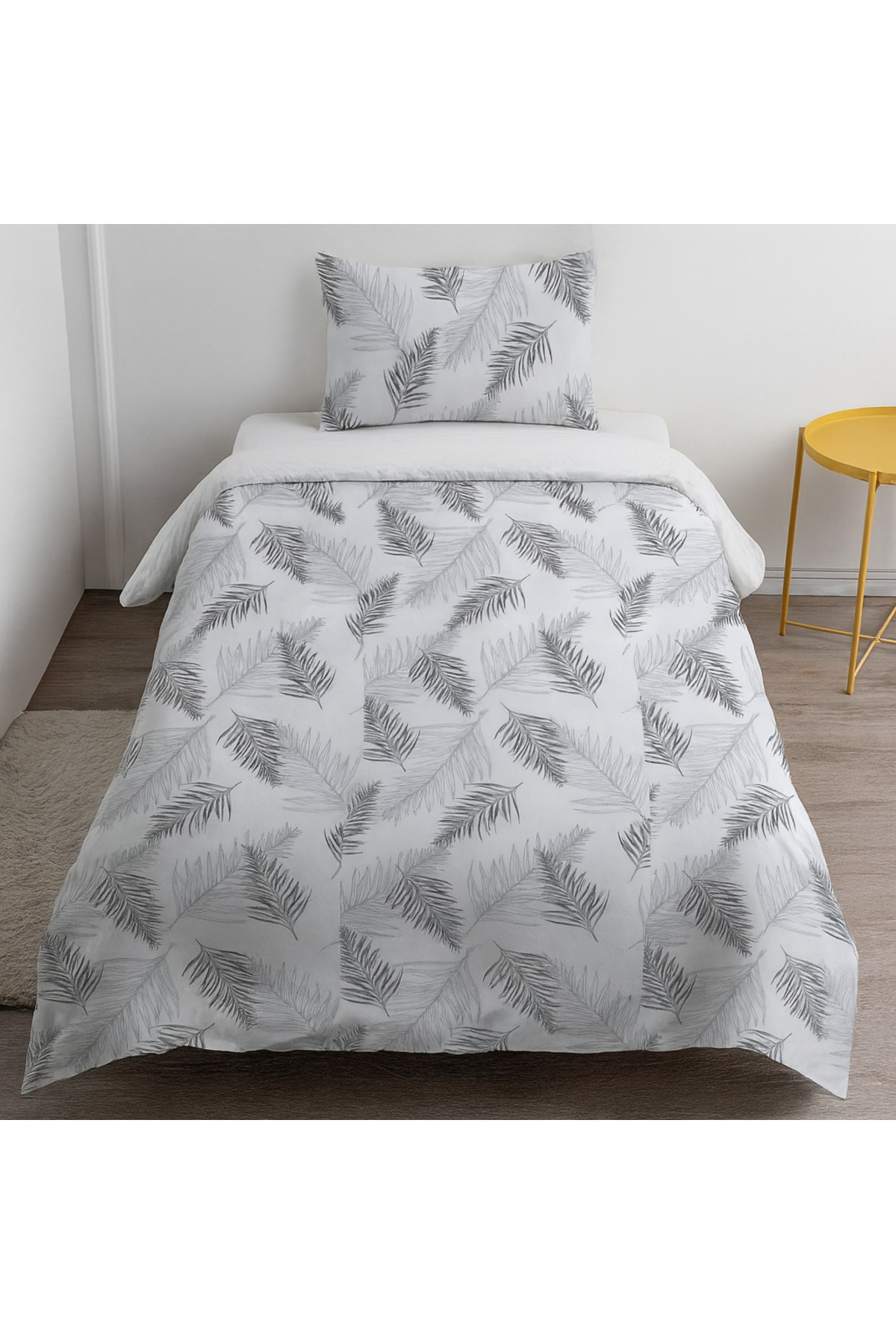 ميزات طقم غطاء لحاف فردي عصري بنمط ريش رمادي (بدون ملاءات) من rabiatekstil