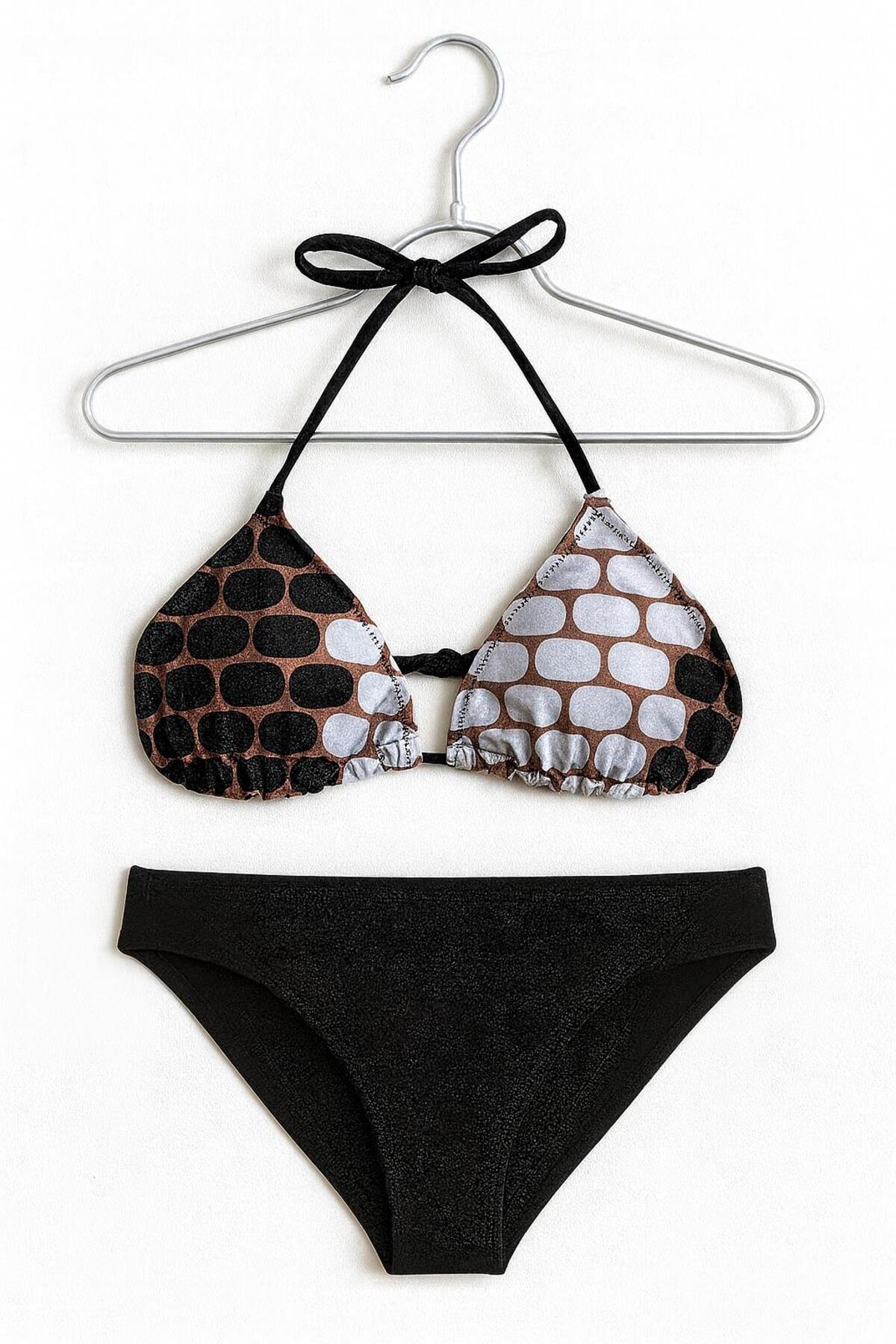 RAPAPA طقم بيكيني بنمط مثلثي ريترو – الجزء السفلي باللون الأسود 0206-
