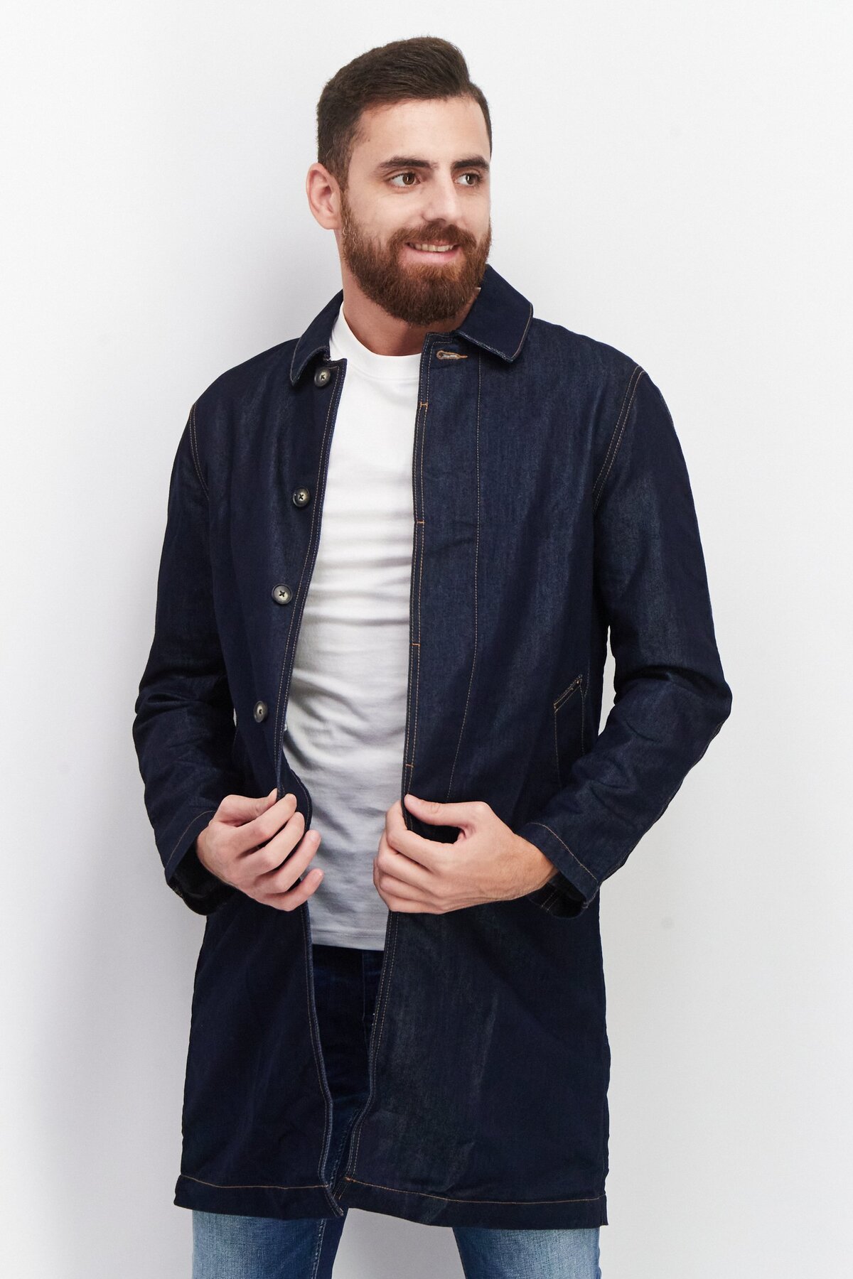 Raw Denim Society جاكيت جينز طويل للرجال، أزرق