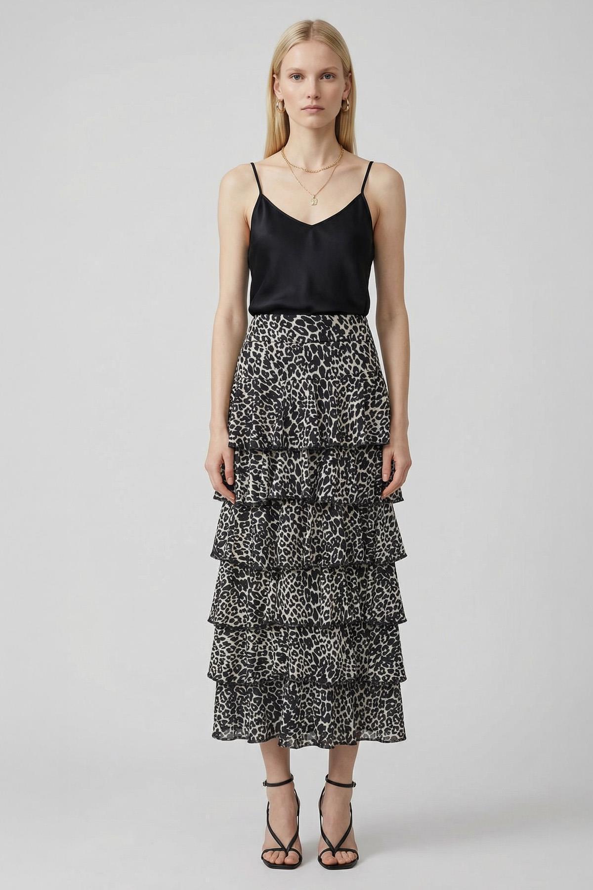 Rays 154 تنورة منقوشة متعددة الطبقات باللون الأسود الفهد