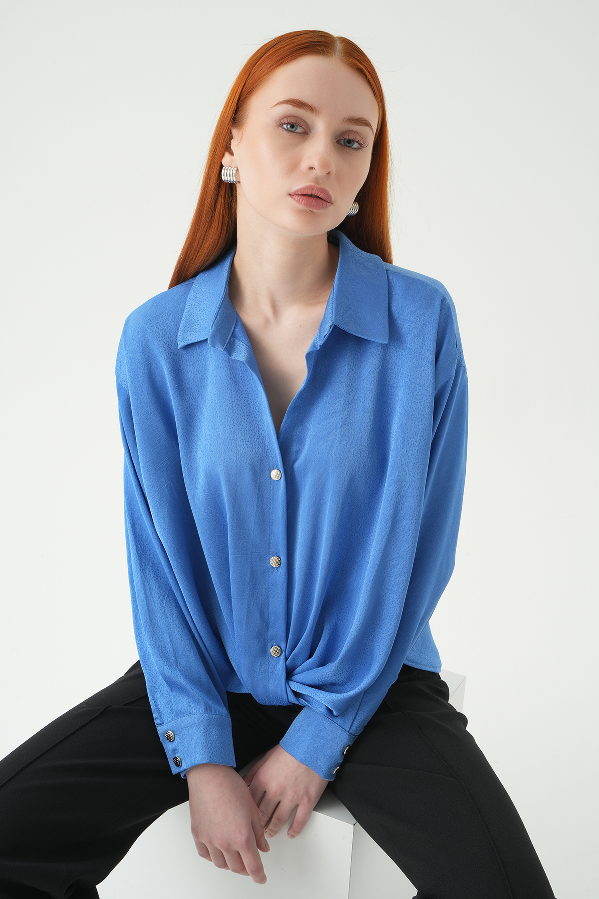 ميزات قميص كلاسيكي بأزرار 251152 باللون الأزرق من Rays