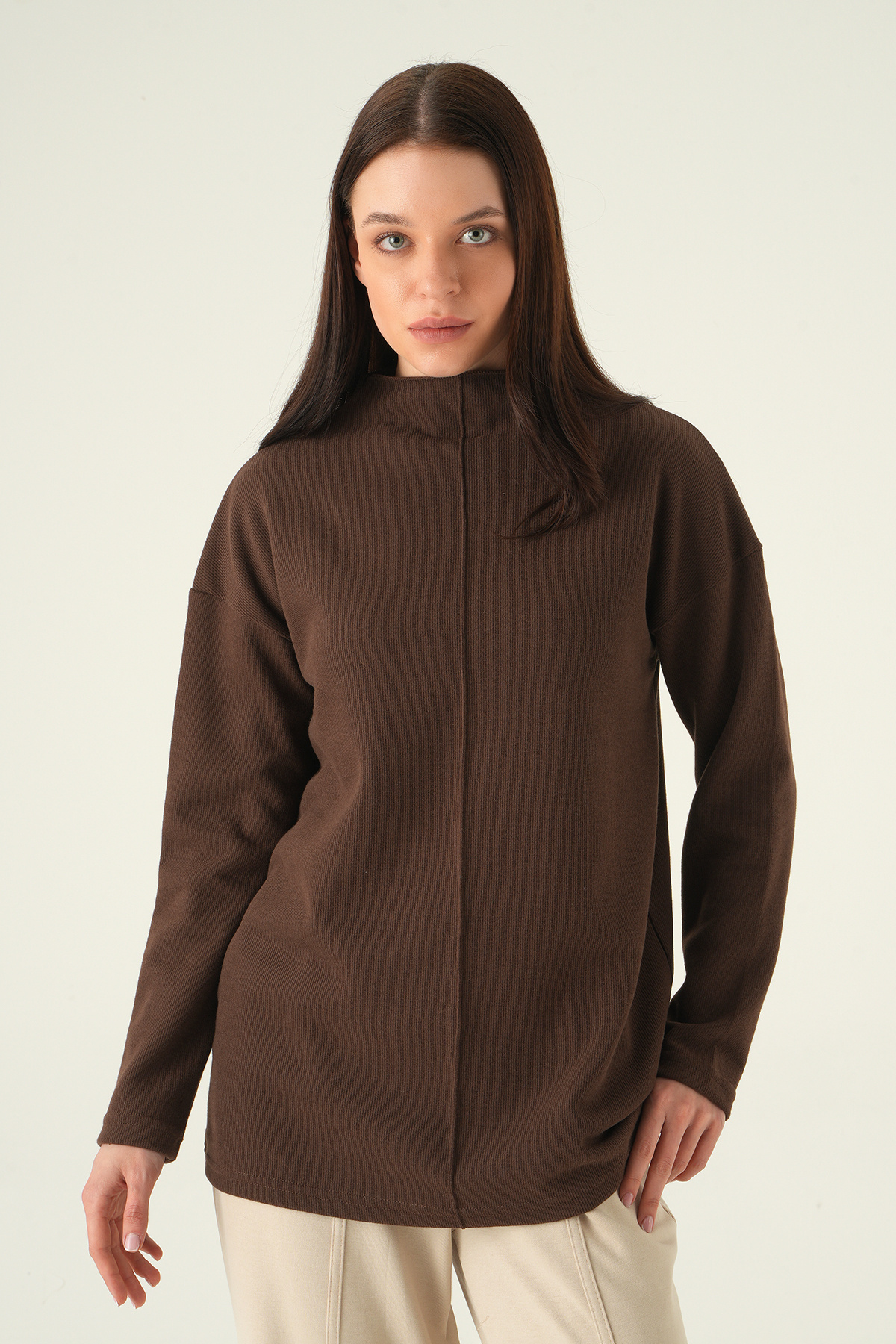 Rays 3096A تونيك بياقة دائرية بني اللون