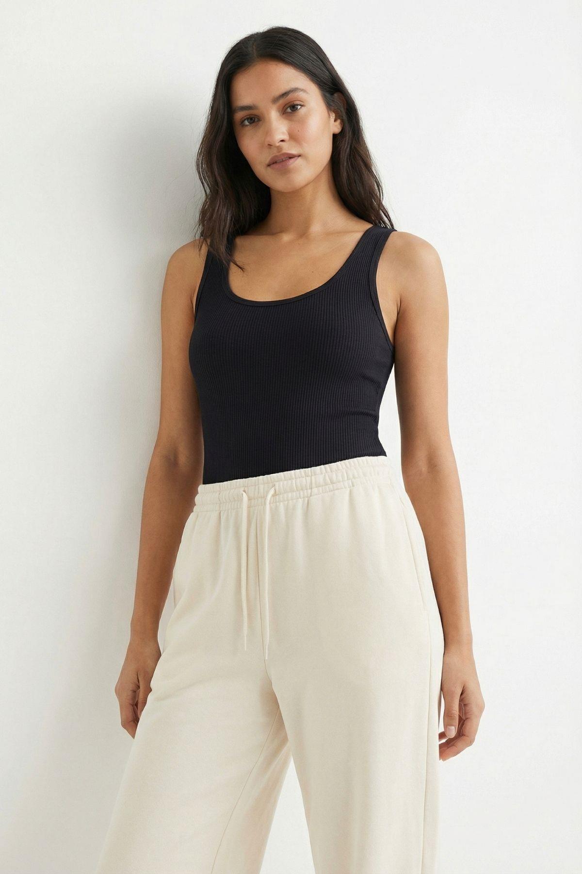 Rays 5068 قميص داخلي ذو أكتاف سميكة وياقة على شكل حرف U باللون الأسود