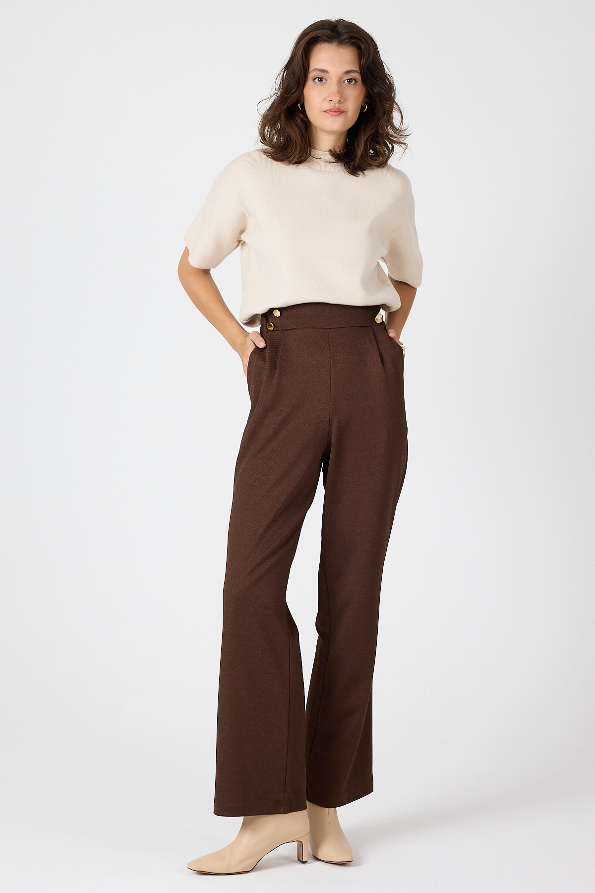 Rays 8111A بنطلون بزر أمامي بني