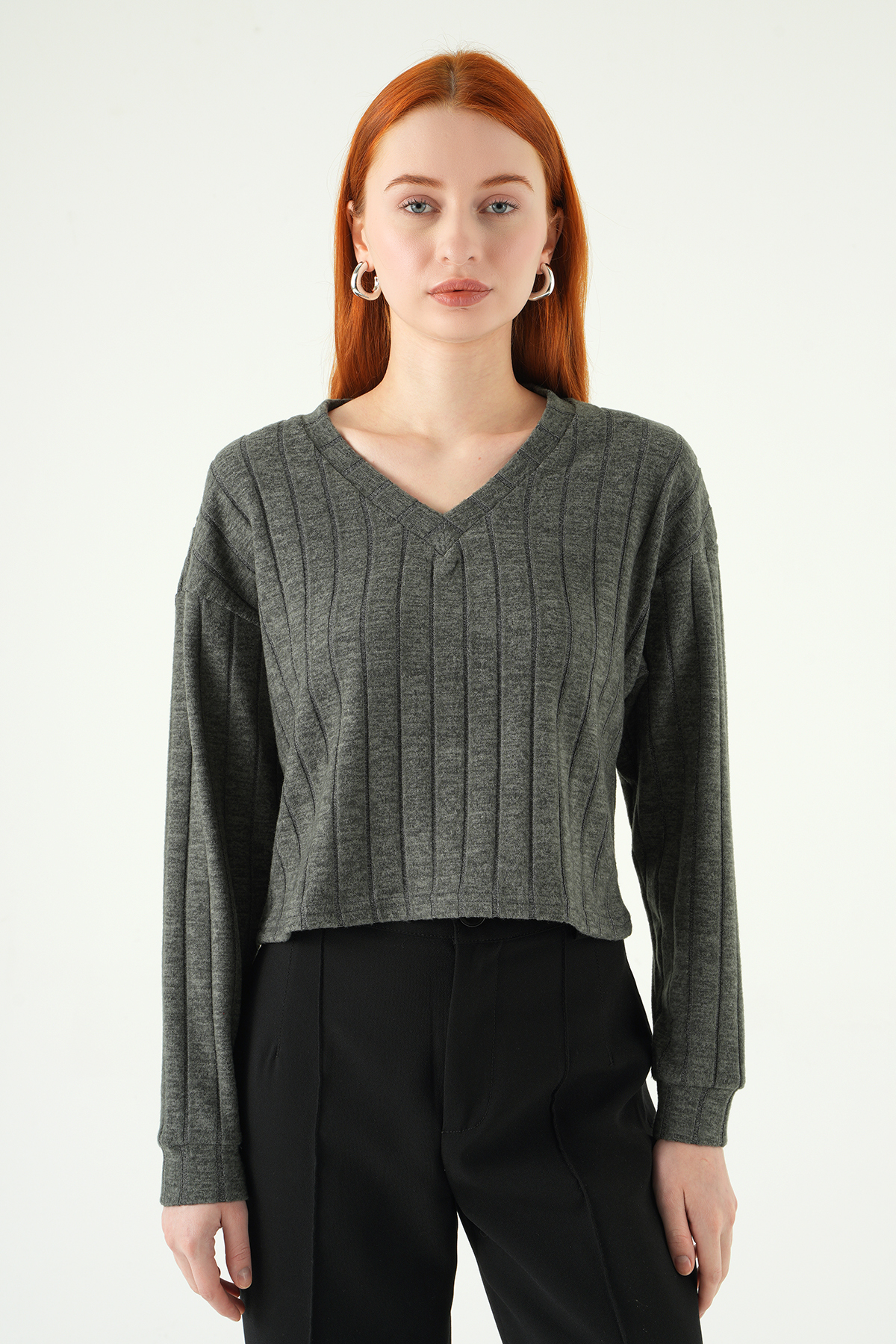 ميزات 8259A بلوزة برقبة على شكل حرف V أنثراسايت من Rays