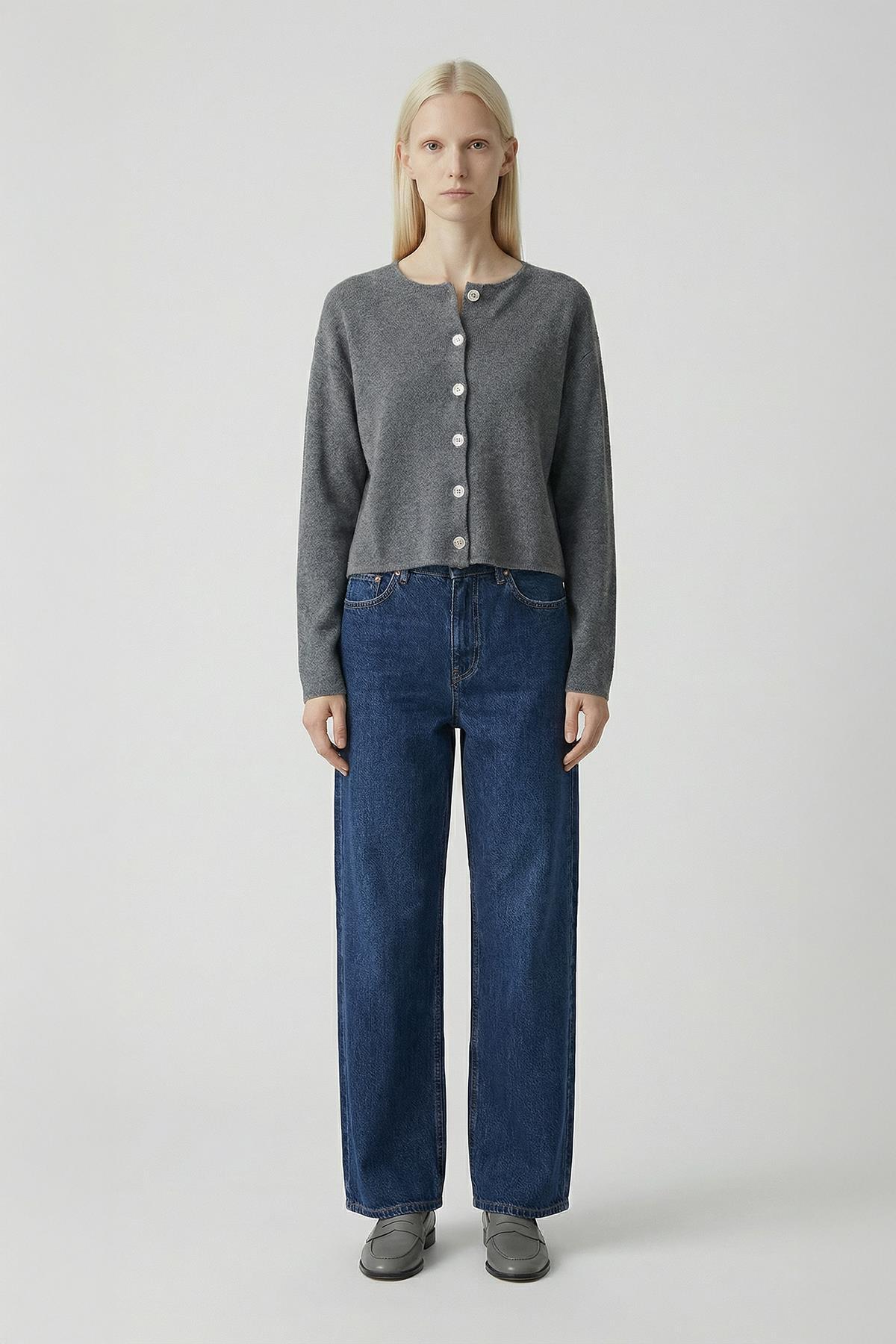 ميزات 8273A بلوزة بياقة دائرية وأزرار لون أنثراسايت من Rays