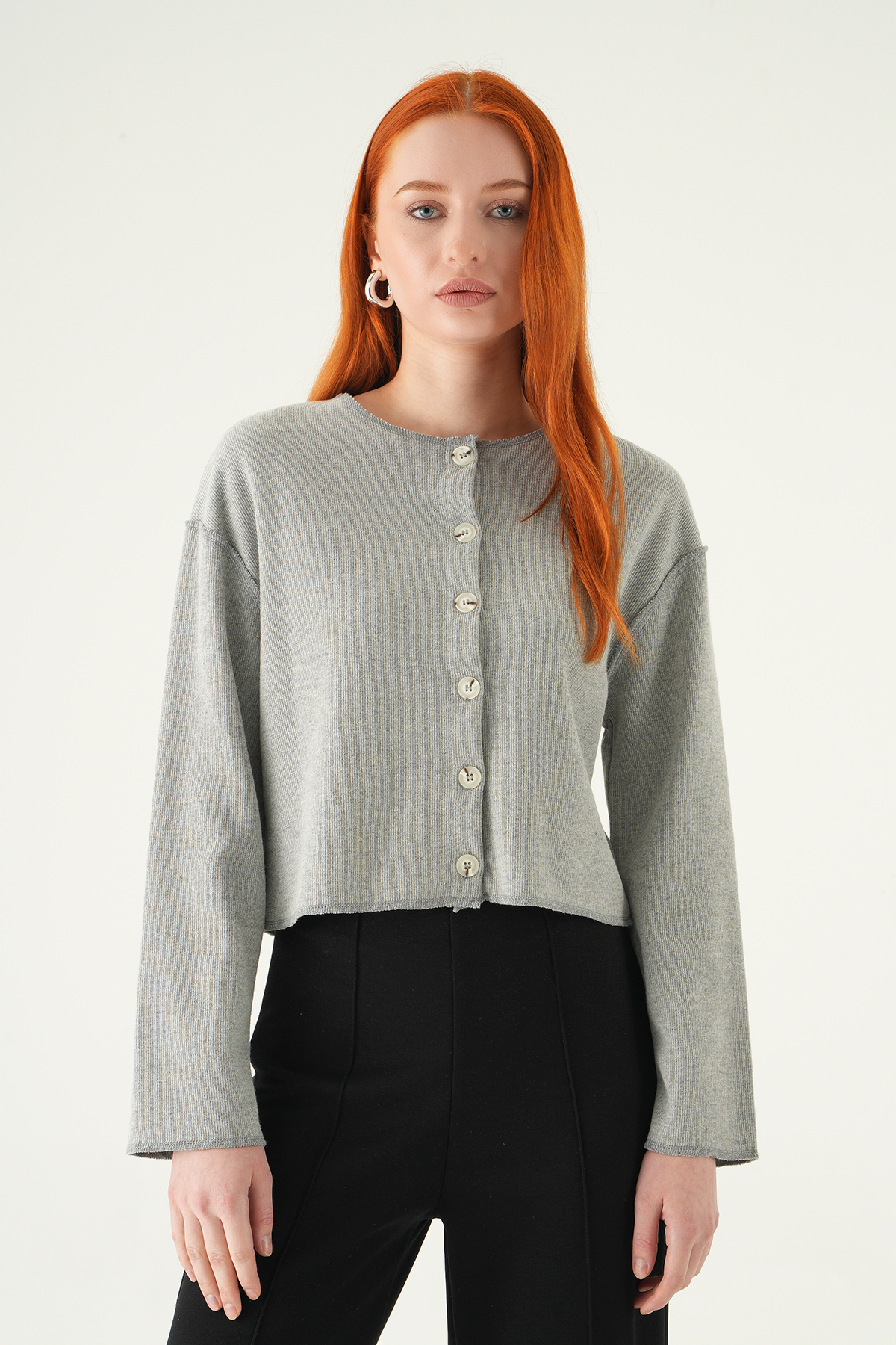 Rays 8273A بلوزة بياقة دائرية وأزرار باللون الرمادي