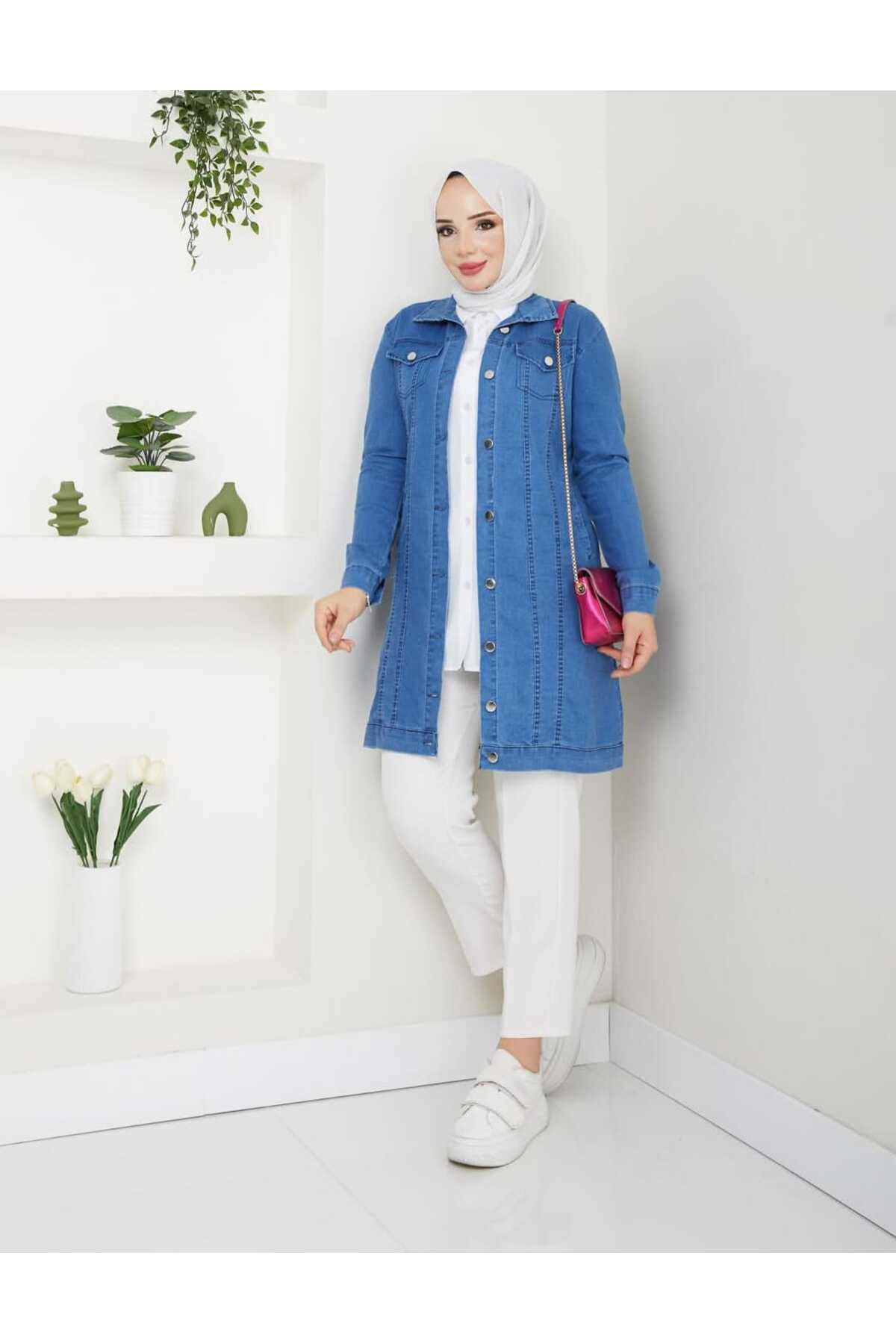 ميزات سترة جينز ناعمة من الليكرا من RAZENCİ