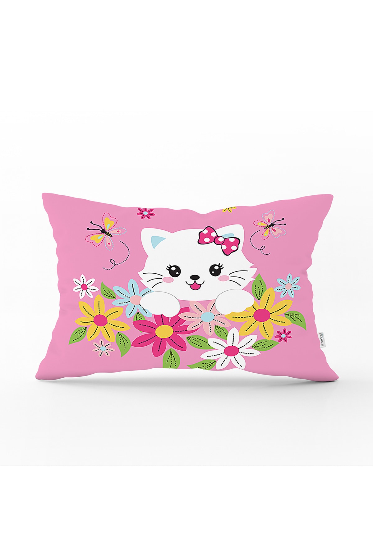ميزات غطاء وسادة مستطيل حديث بنمط قطة لطيفة داخل الزهور من Realhomes