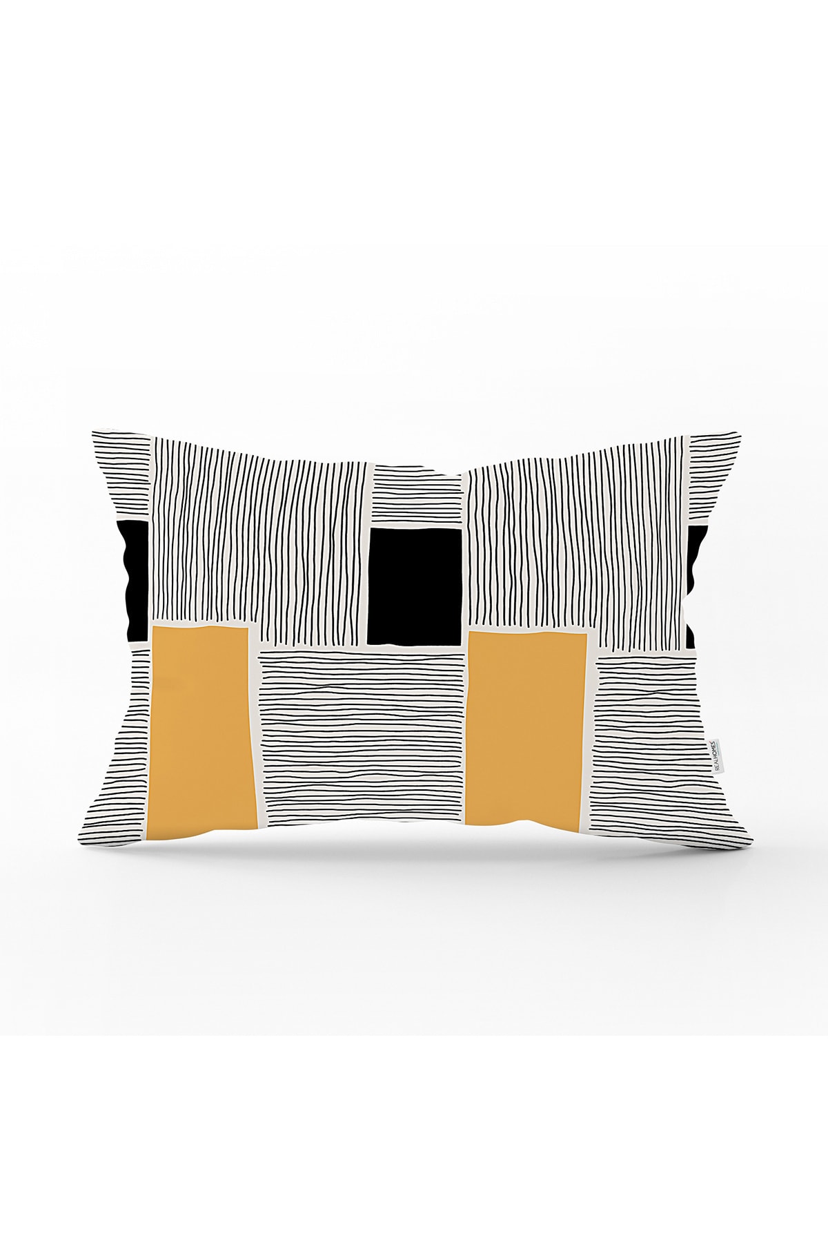 ميزات غطاء وسادة مستطيل مزخرف مطبوع رقميًا بتصميم بدائي تجريدي من Realhomes
