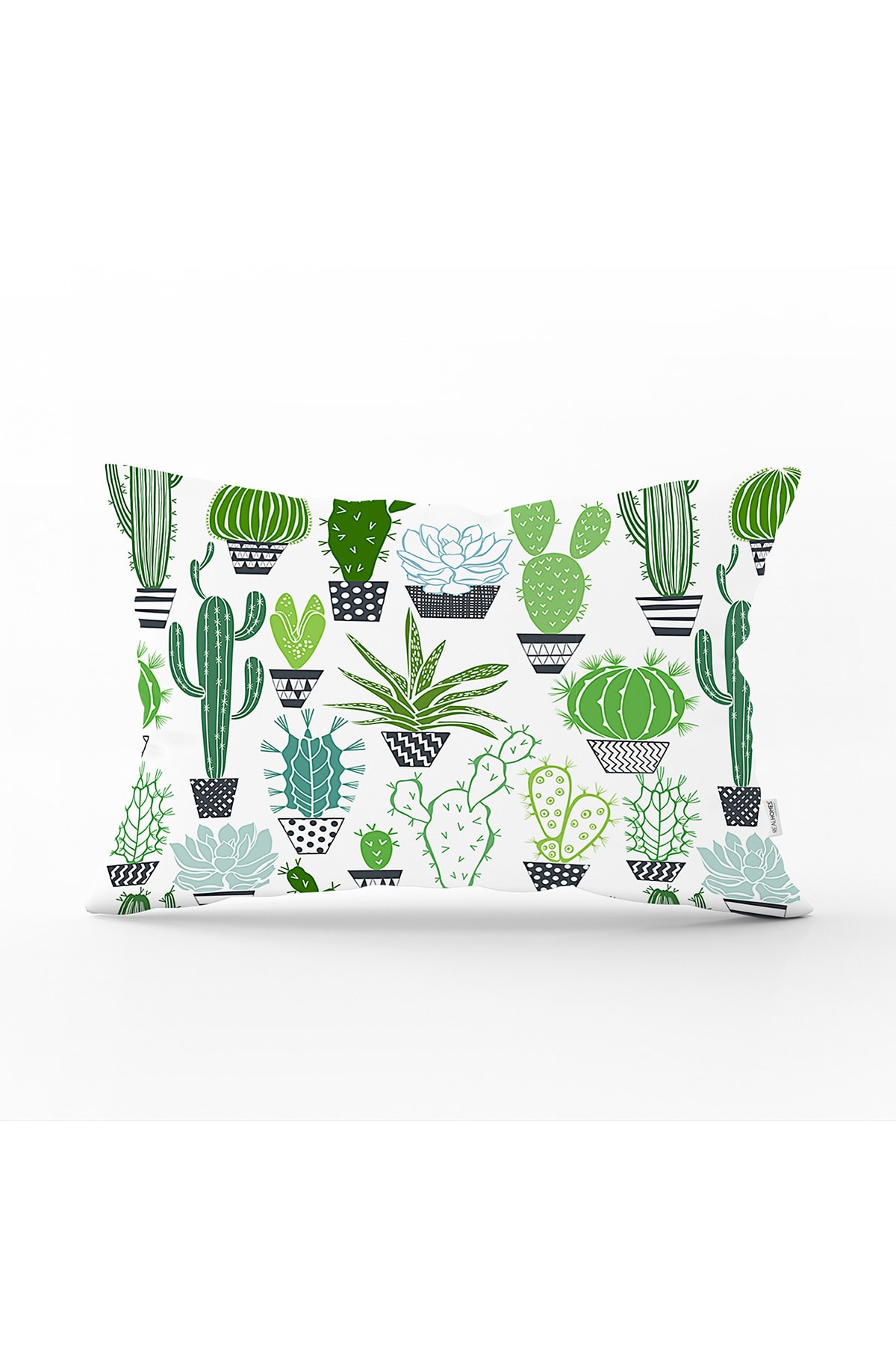 Realhomes غطاء وسادة مستطيل بنمط الصبار الأخضر على خلفية بيضاء