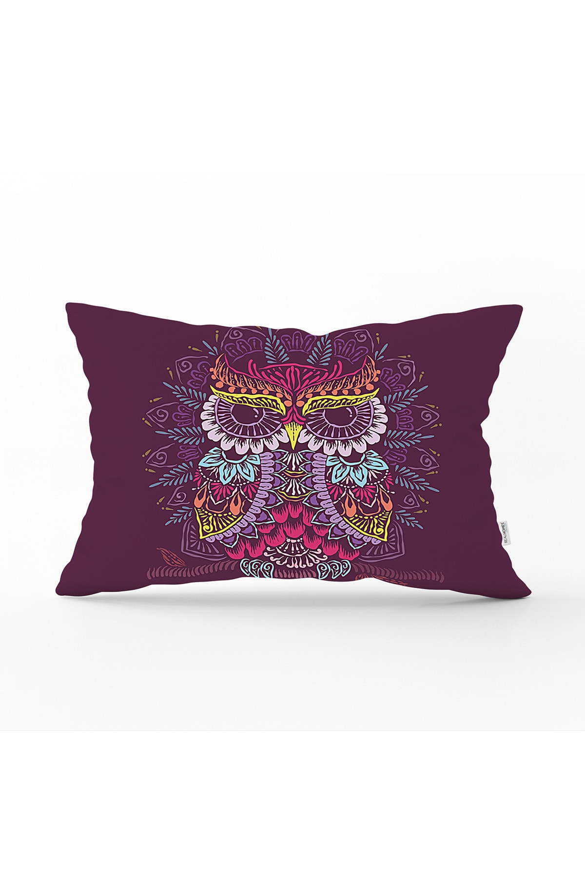 ميزات غطاء وسادة مستطيل حديث بنمط بومة أصلية على خلفية أرجوانية من Realhomes