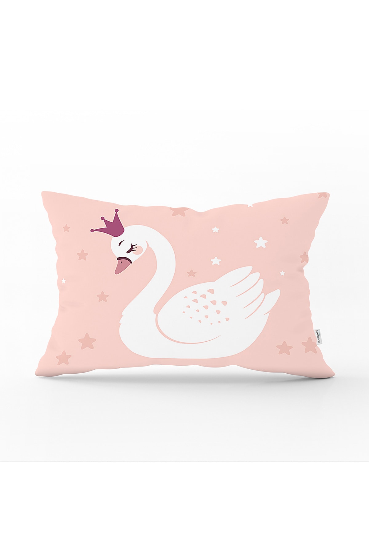 ميزات غطاء وسادة مستطيل مطبوع رقميًا بنمط البجعة مع خلفية وردية من Realhomes