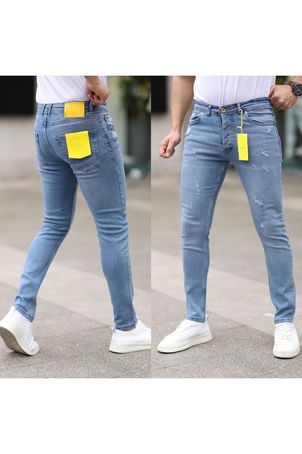ميزات بنطلون جينز ممزق من قماش الليكرا للرجال من REDCODE