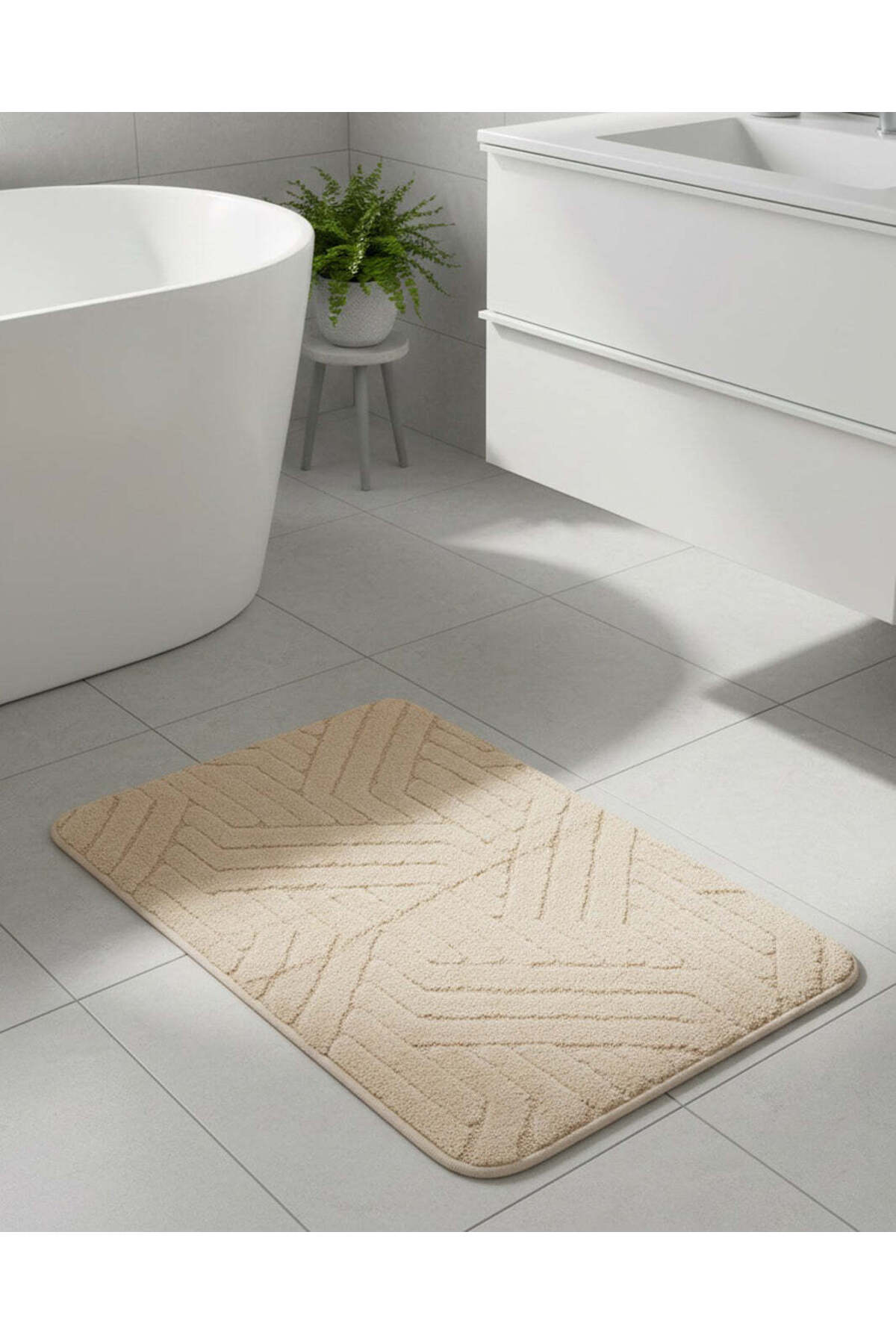 ميزات سجادة حمام من إسفنج الذاكرة باللون البيج من REDTAG