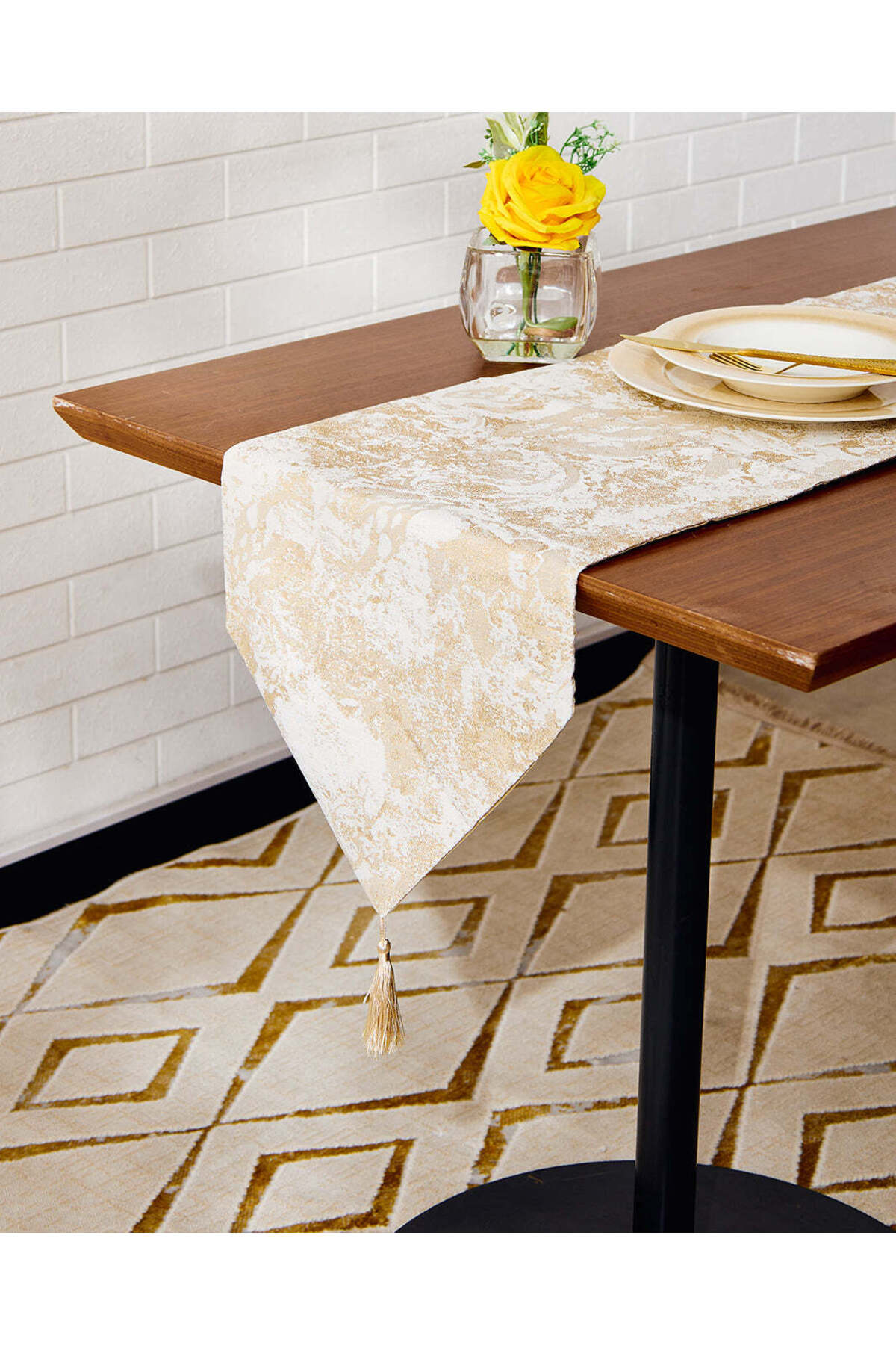 ميزات مفرش طاولة طويل بيج مطبوع من REDTAG
