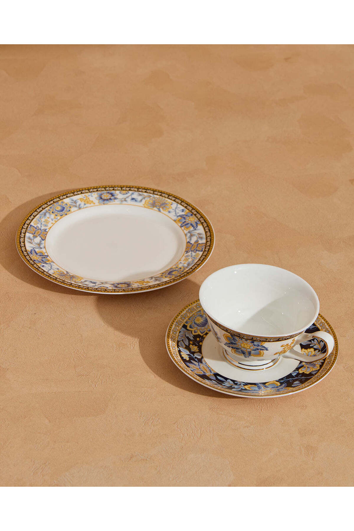 REDTAG طقم إفطار بنقوش زرقاء وذهبية (3 قطع)