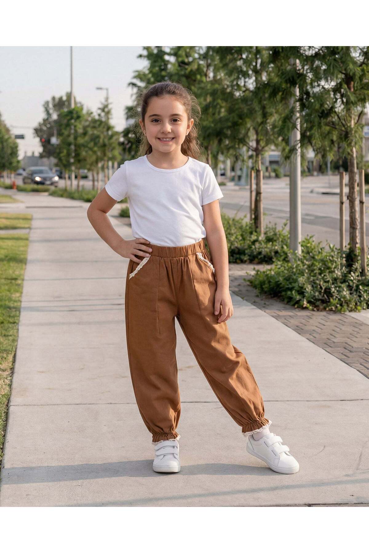 ميزات بنطلون بني سادة للبنات من REDTAG