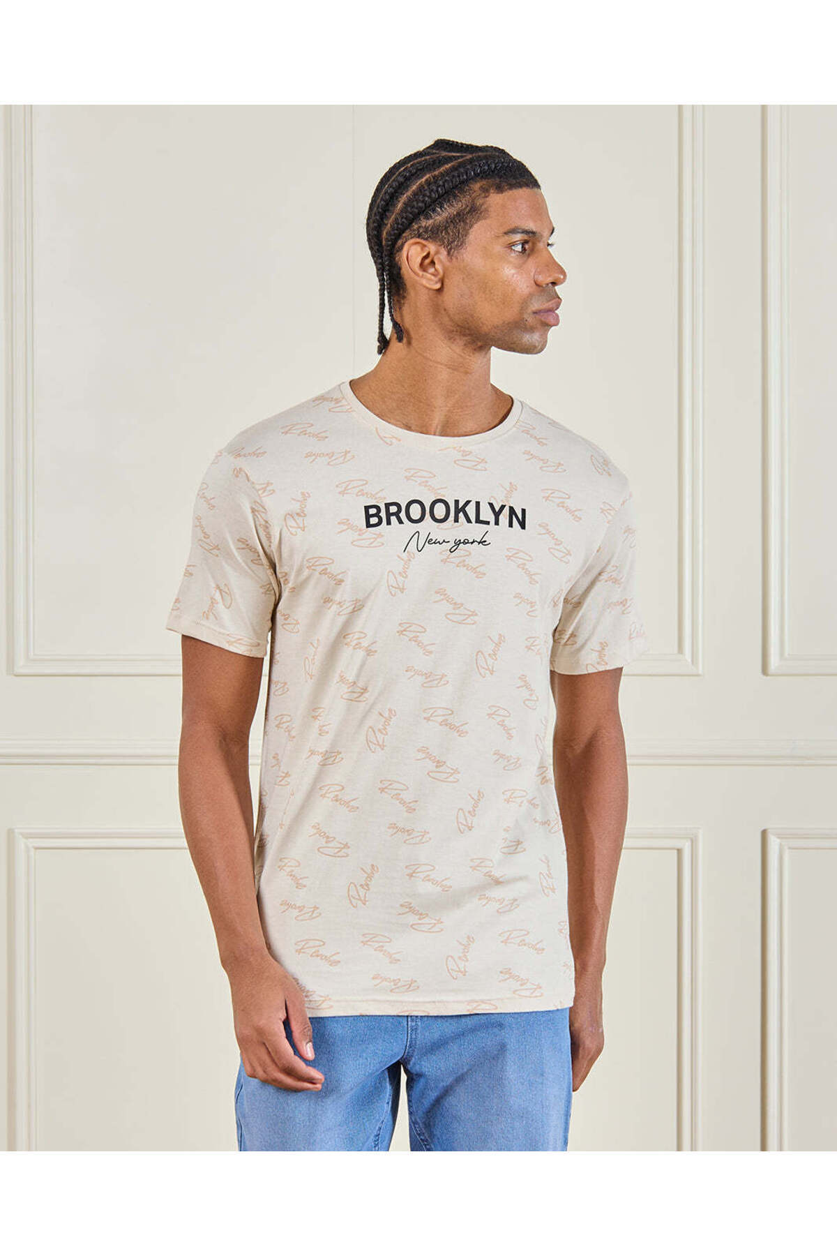 ميزات تي شيرت رجالي مطبوع باللون البيج من REDTAG