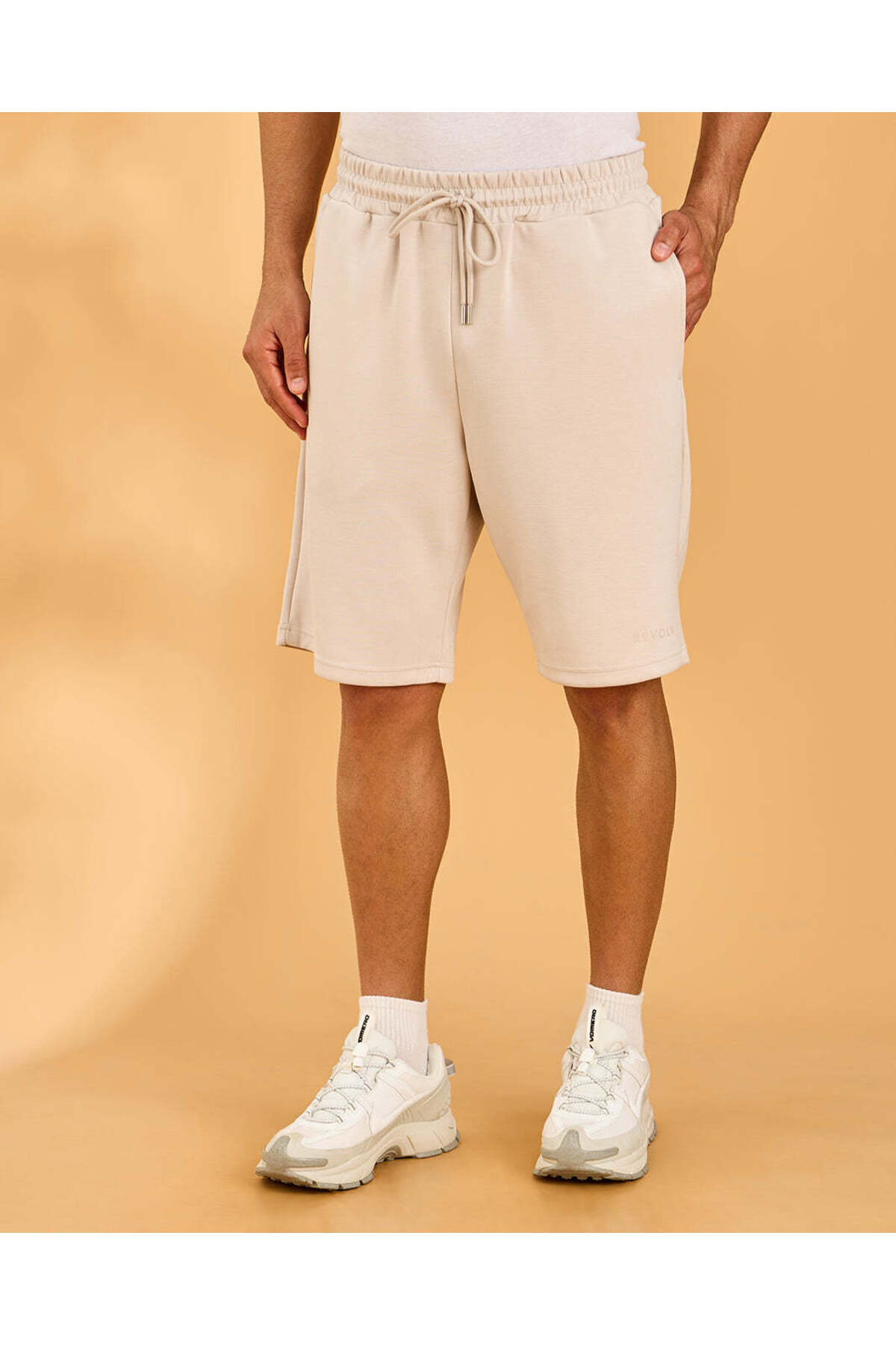 ميزات شورت رياضي سادة للرجال باللون البيج من REDTAG
