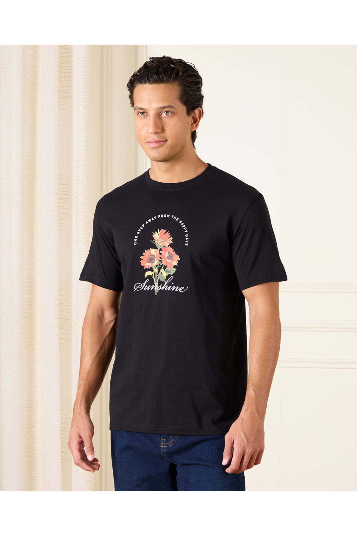 ميزات تي شيرت رجالي أسود أساسي برسومات جرافيكية من REDTAG