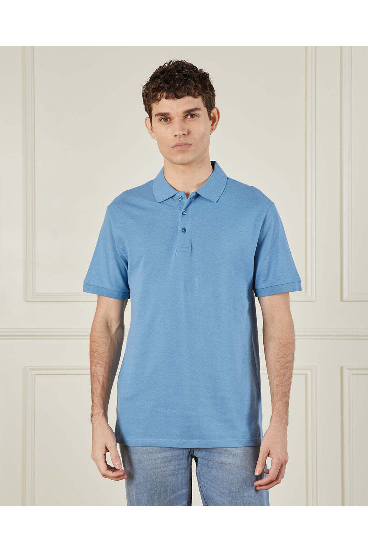 ميزات قميص بولو رجالي أساسي باللون الأزرق من REDTAG