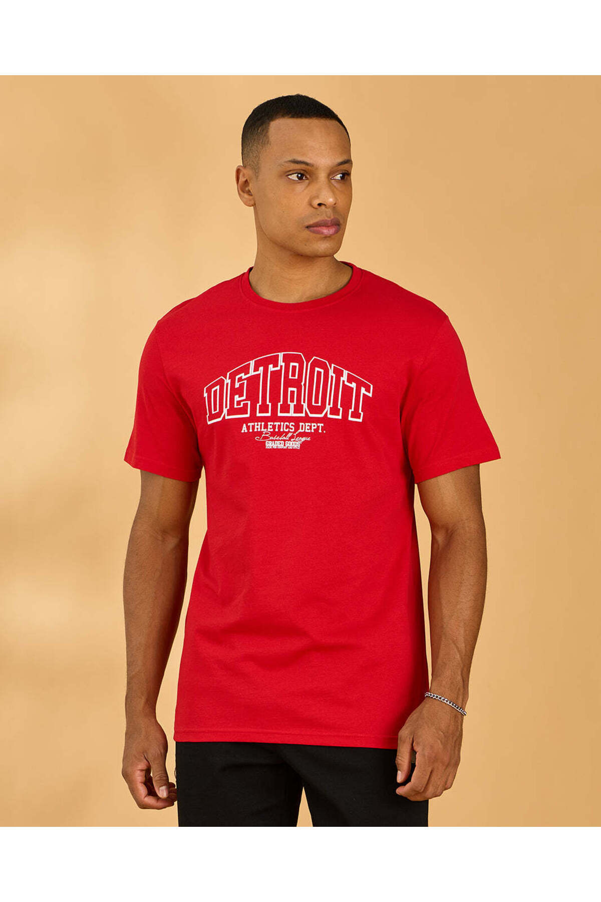 REDTAG تيشيرت رجالي أحمر برسومات أساسية