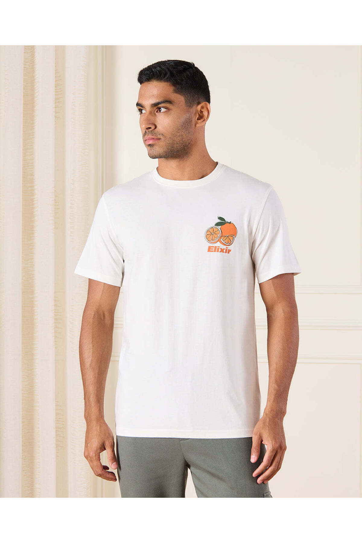 ميزات تي شيرت رجالي أبيض أساسي برسومات جرافيكية من REDTAG