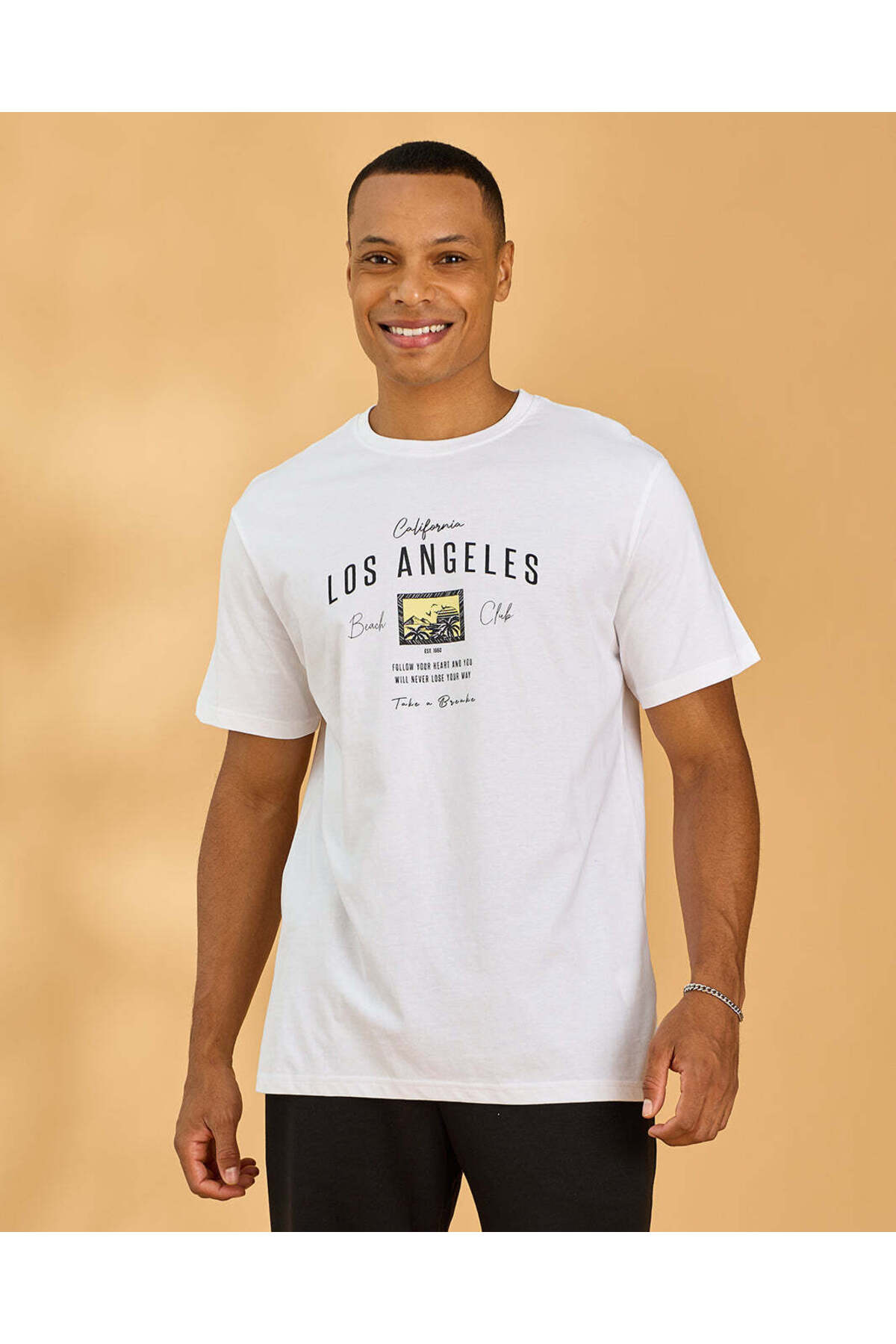 REDTAG تيشيرت رجالي أبيض برسومات أساسية
