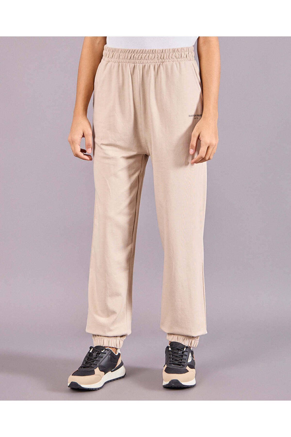 ميزات بنطال رياضي نسائي سادة باللون البيج من REDTAG