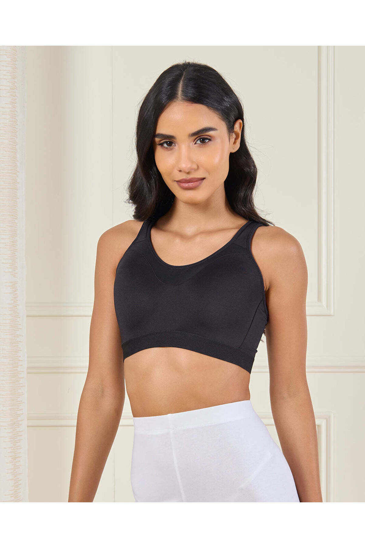 ميزات حمالة صدر رياضية مبطنة سوداء سادة للنساء من REDTAG