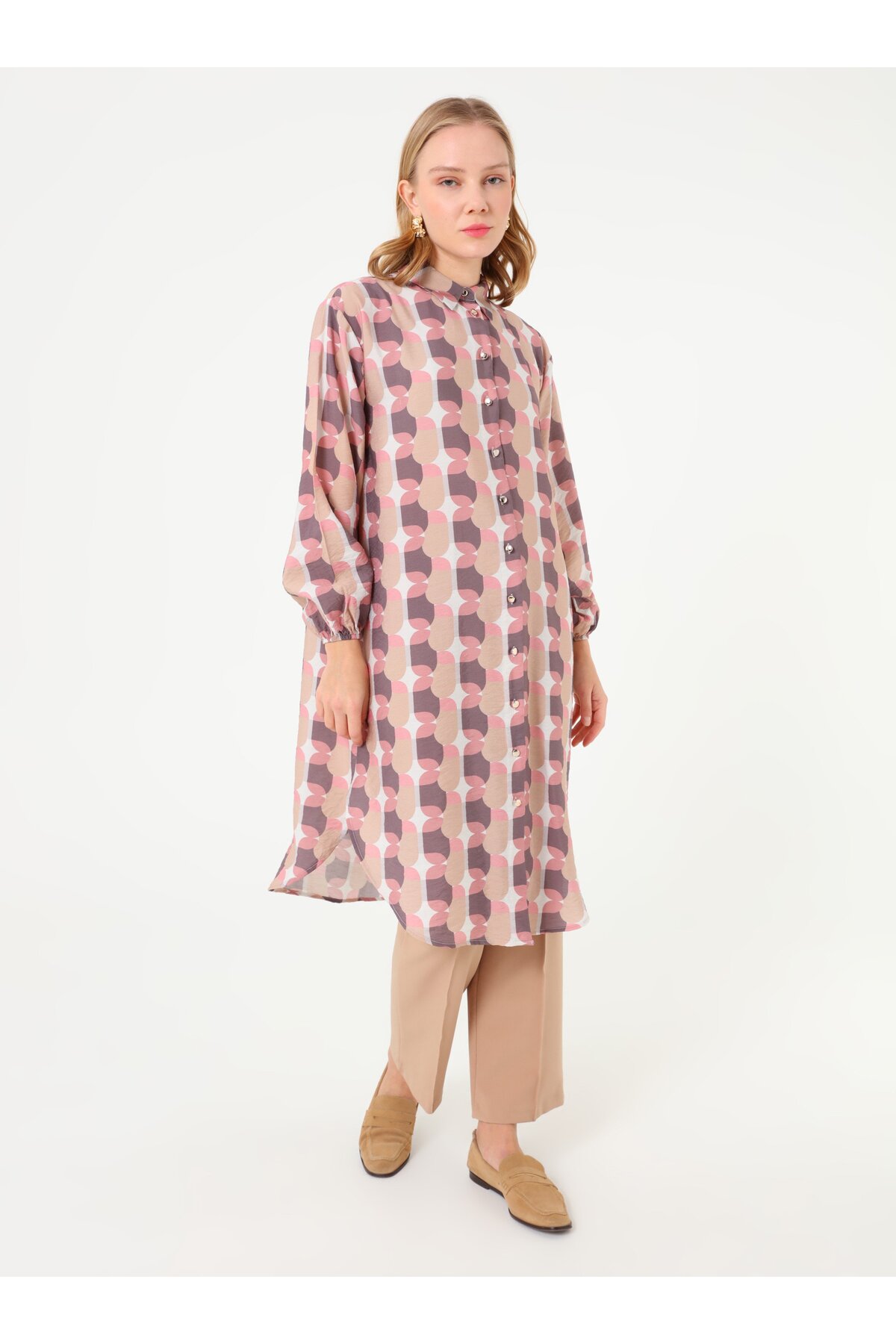 ميزات تونيك طويل بأكمام بالون منقوشة - منقوشة - من Refka