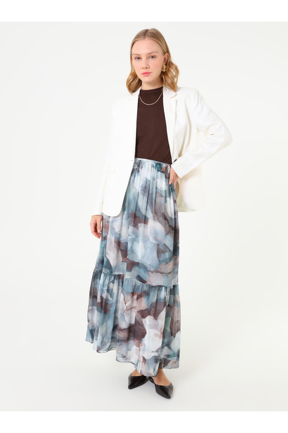ميزات تنورة فستان بتجاعيد مجمّعة بنمط تجريدي - منقوشة باللون الأزرق - من Refka