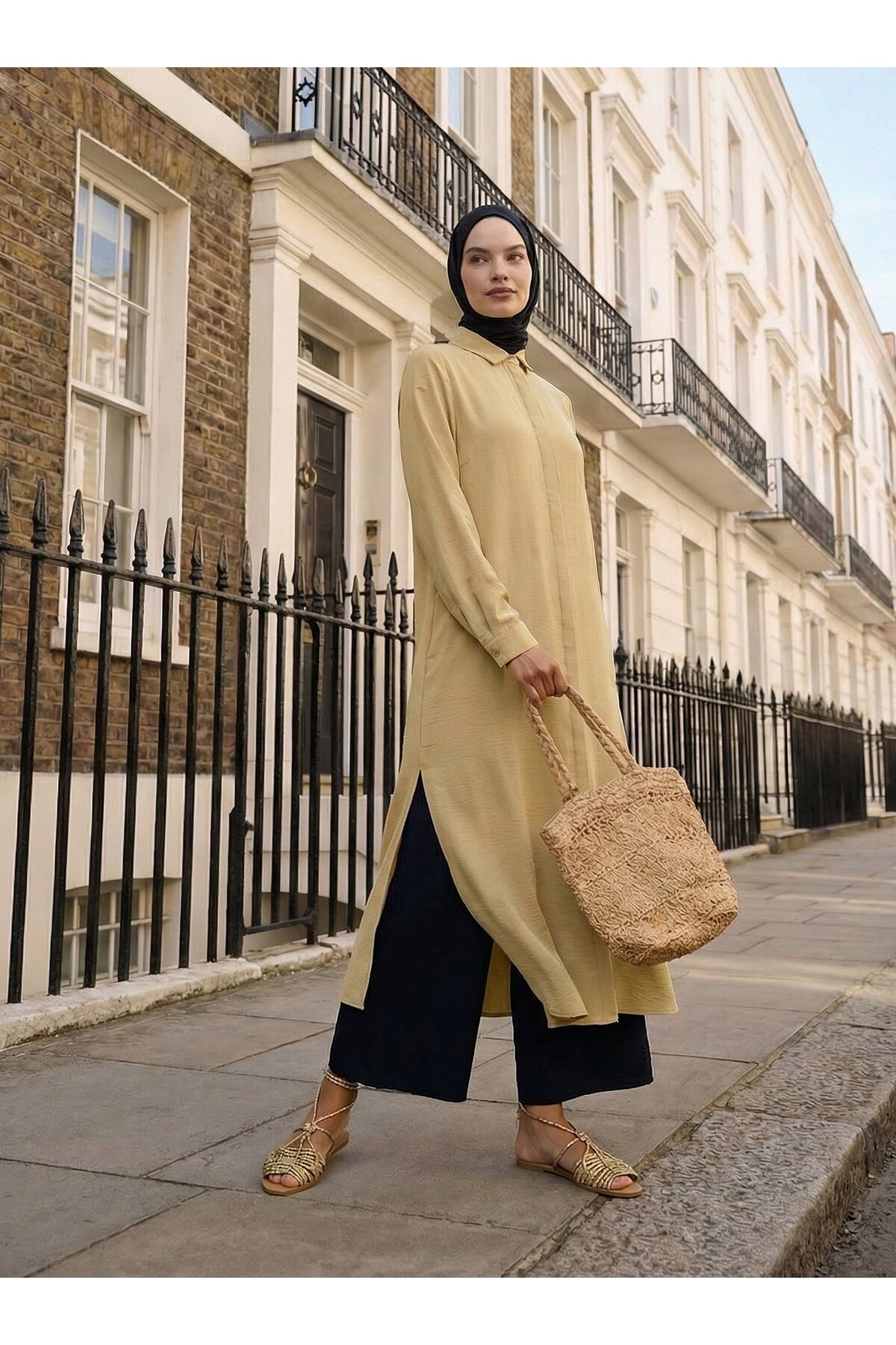 ميزات تونيك طويل بأزرار من الأعلى من Aerobin - أخضر فستقي - من Refka