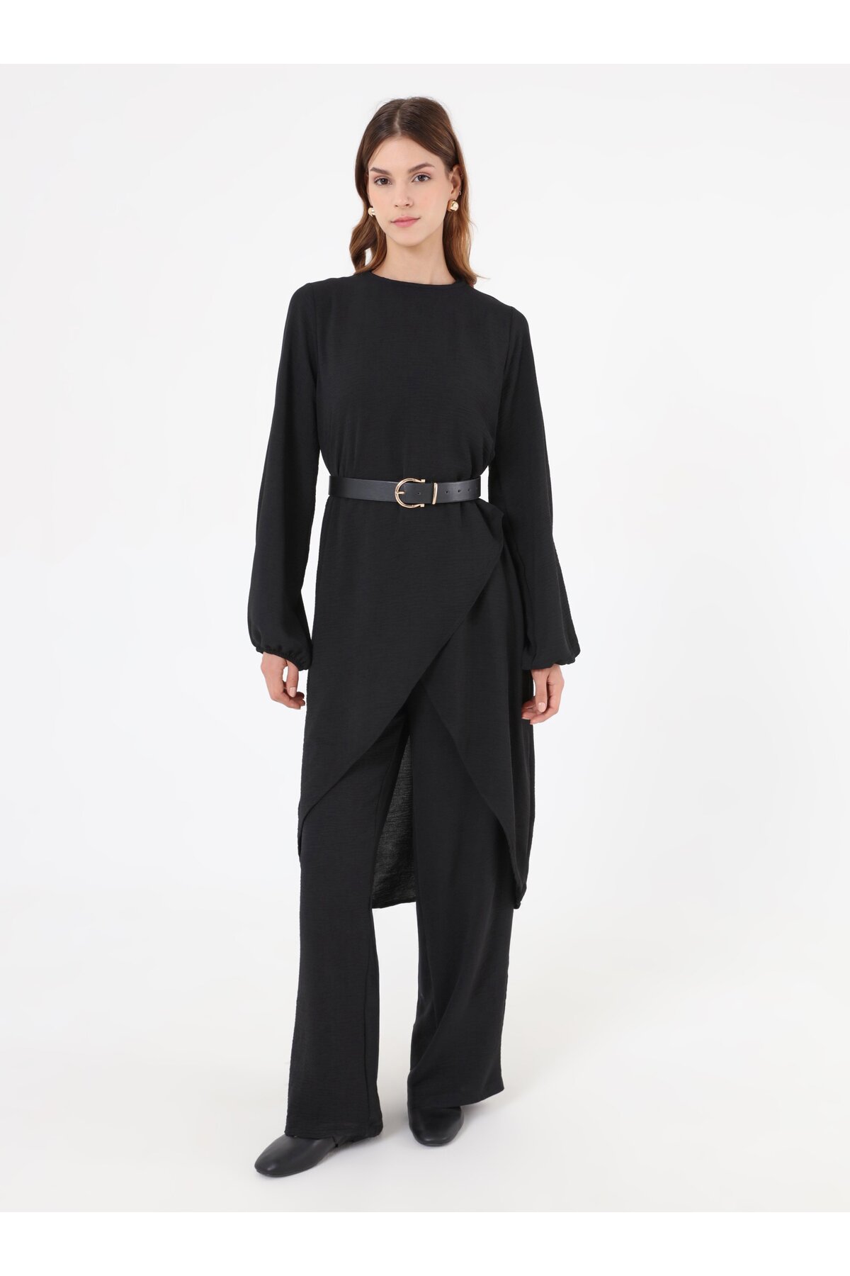 Refka طقم أساسي بأكمام بالون بقصة غير متماثلة - أسود -