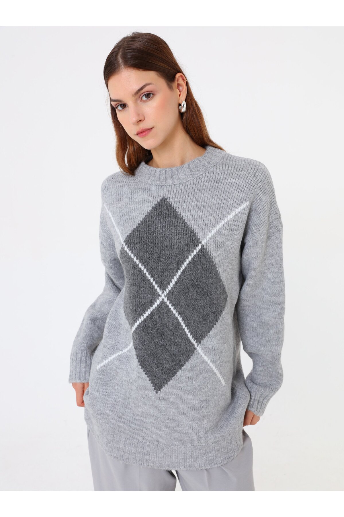 ميزات سترة منقوشة بنمط البقلاوة - رمادي - من Refka