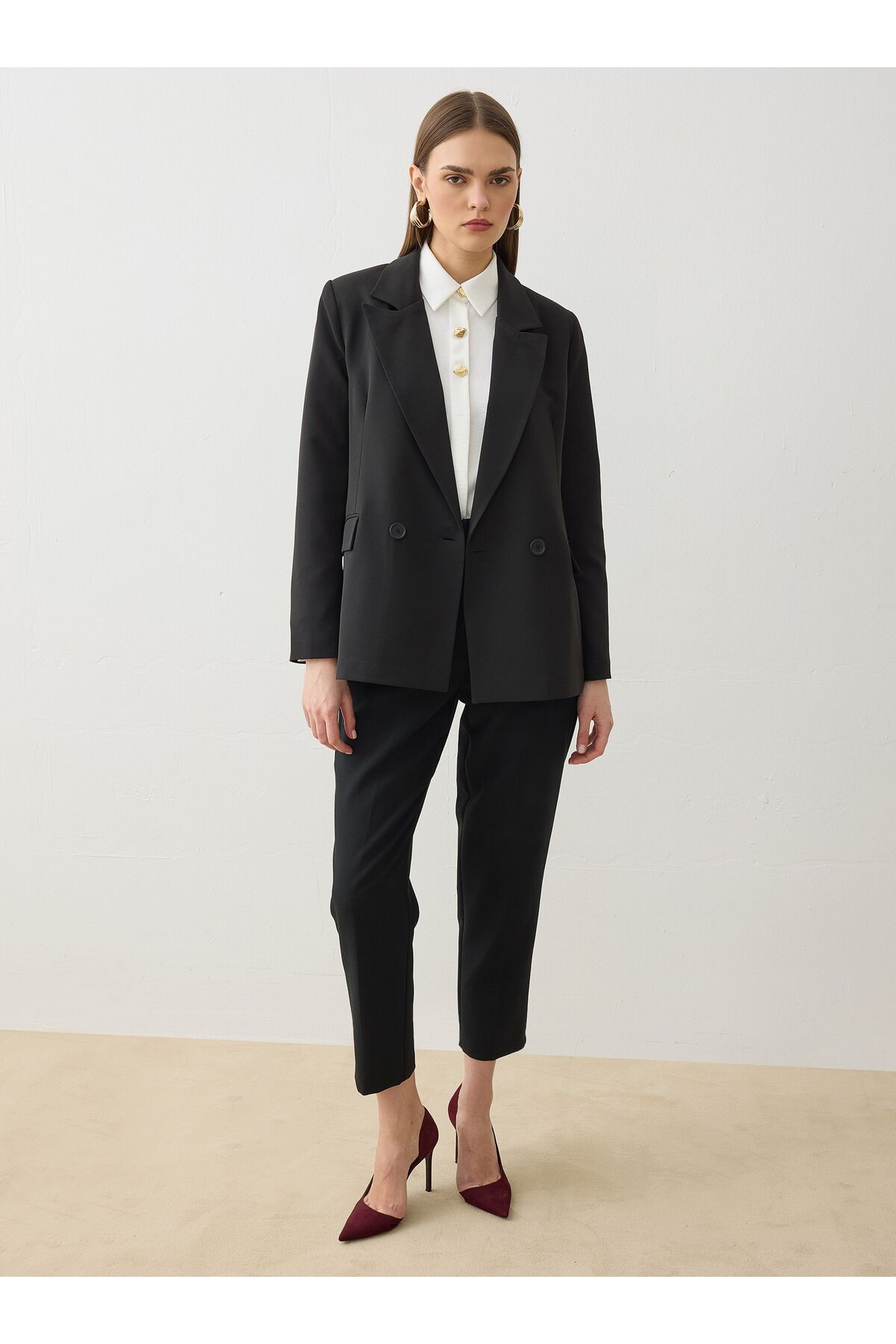 Refka سترة بليزر بياقة بأزرار على الجهتين مع حزام - أسود -