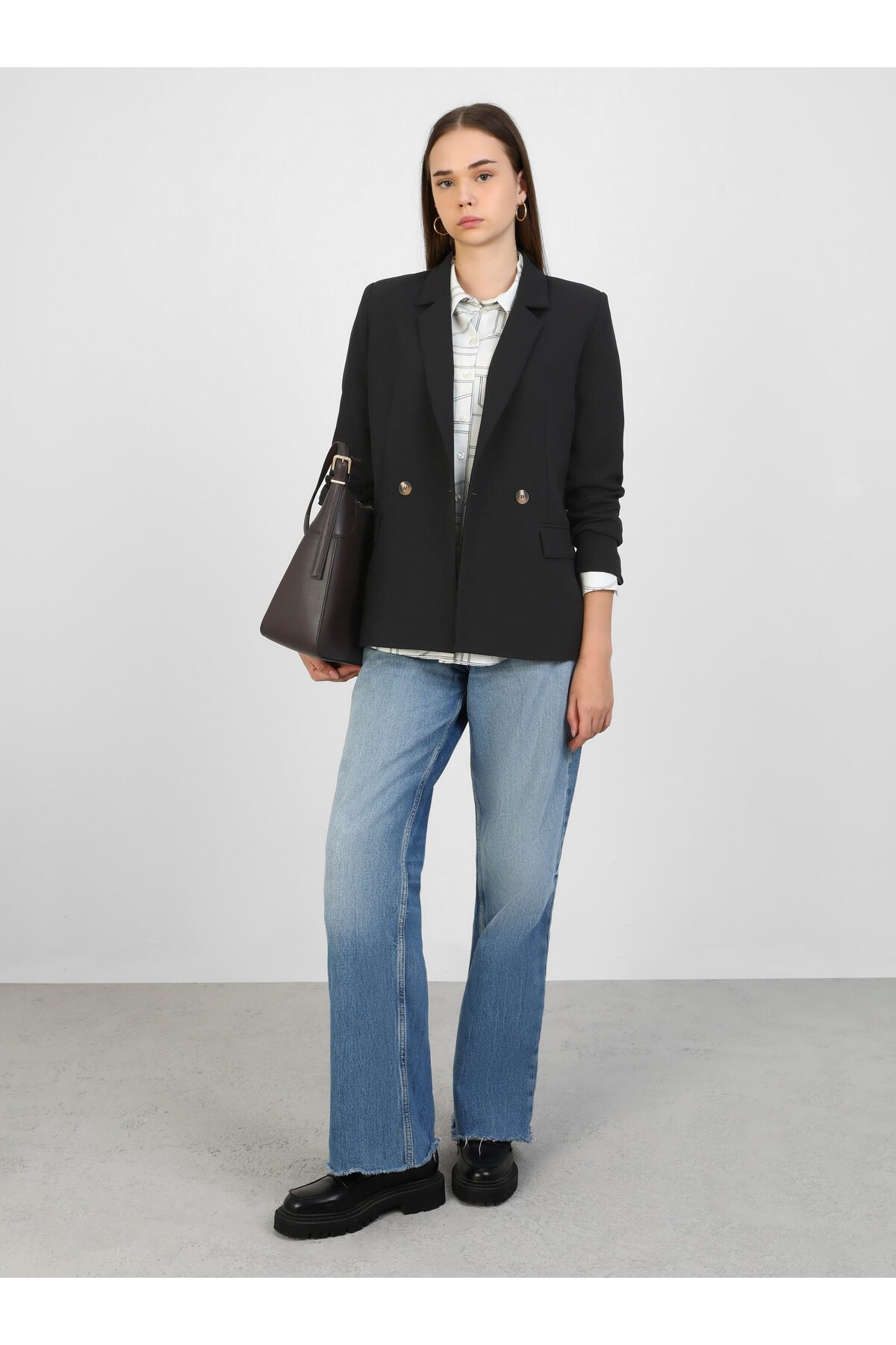 Refka سترة من القماش المزدوج باللون الأسود - مزينة بأزرار