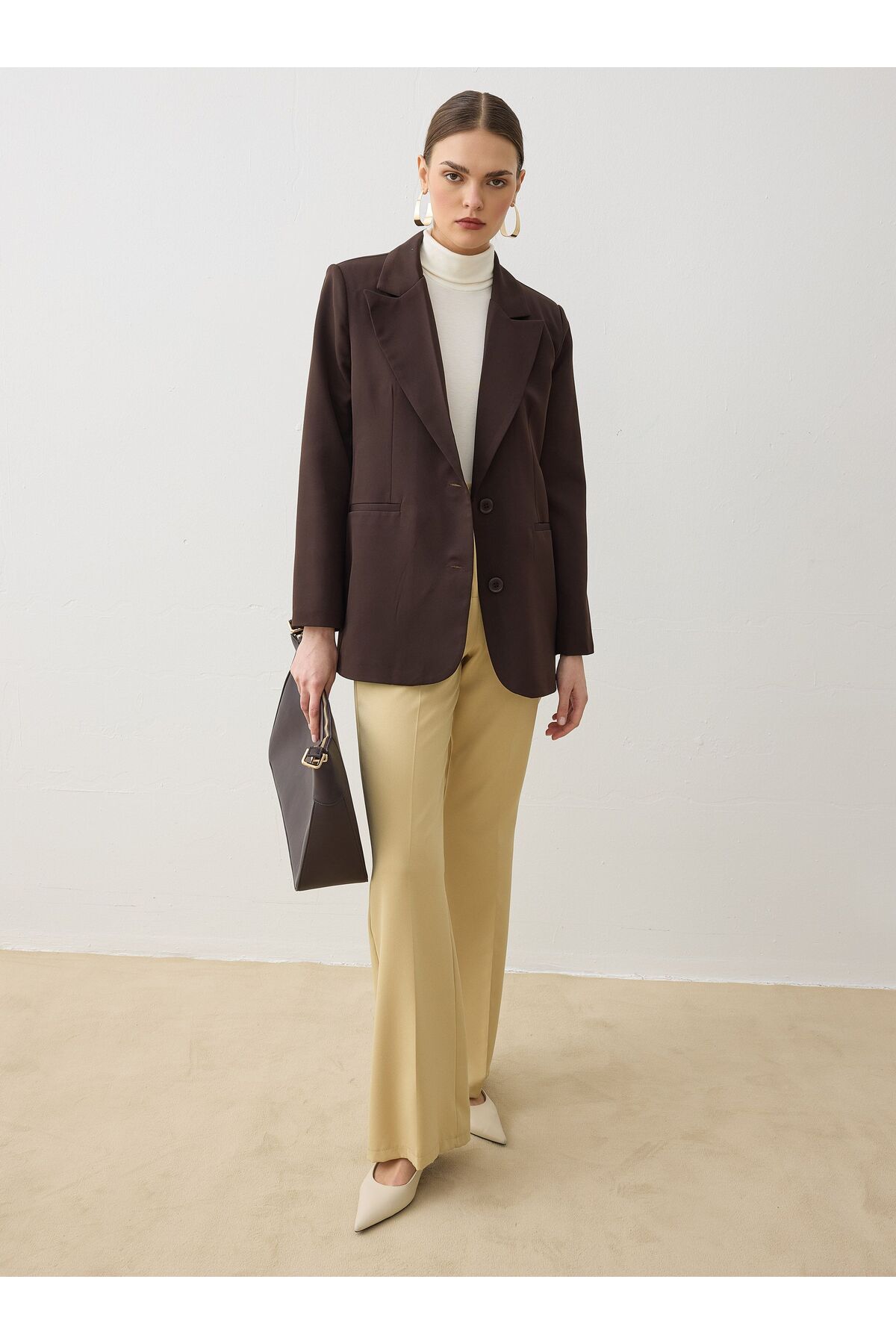 ميزات جاكيت بليزر مبطن بأزرار مزدوجة - لون بني غامق من Refka
