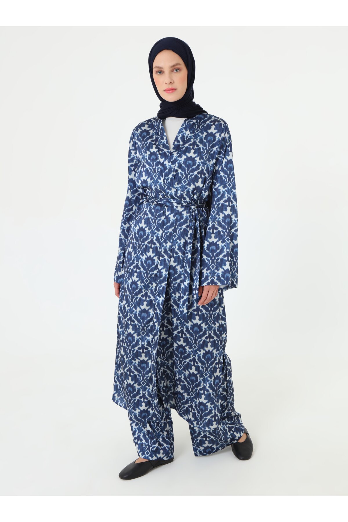 ميزات طقم بنطلون كيمونو بحزام منقوش - منقوش باللون الأزرق - من Refka