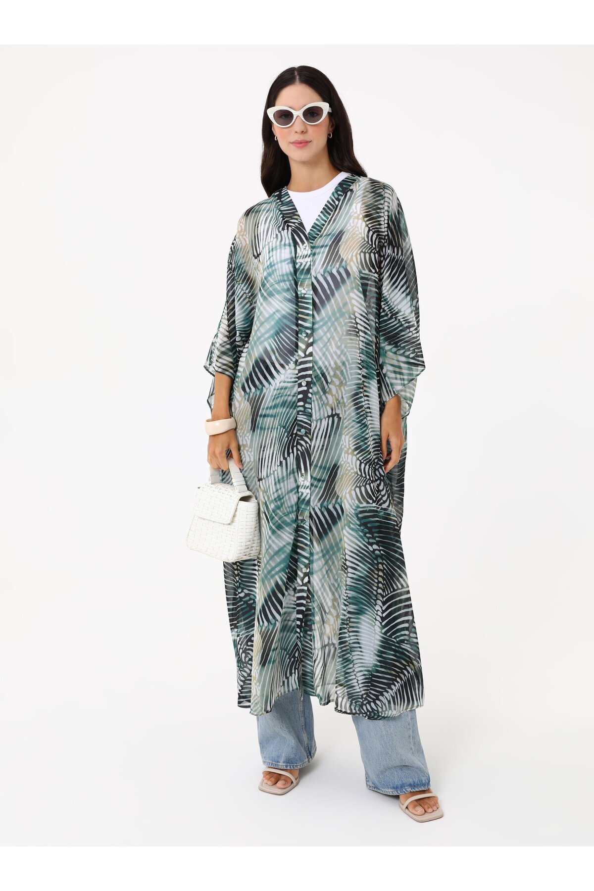 Refka عباية شيفون طويلة منقوشة - كاكي منقوش -