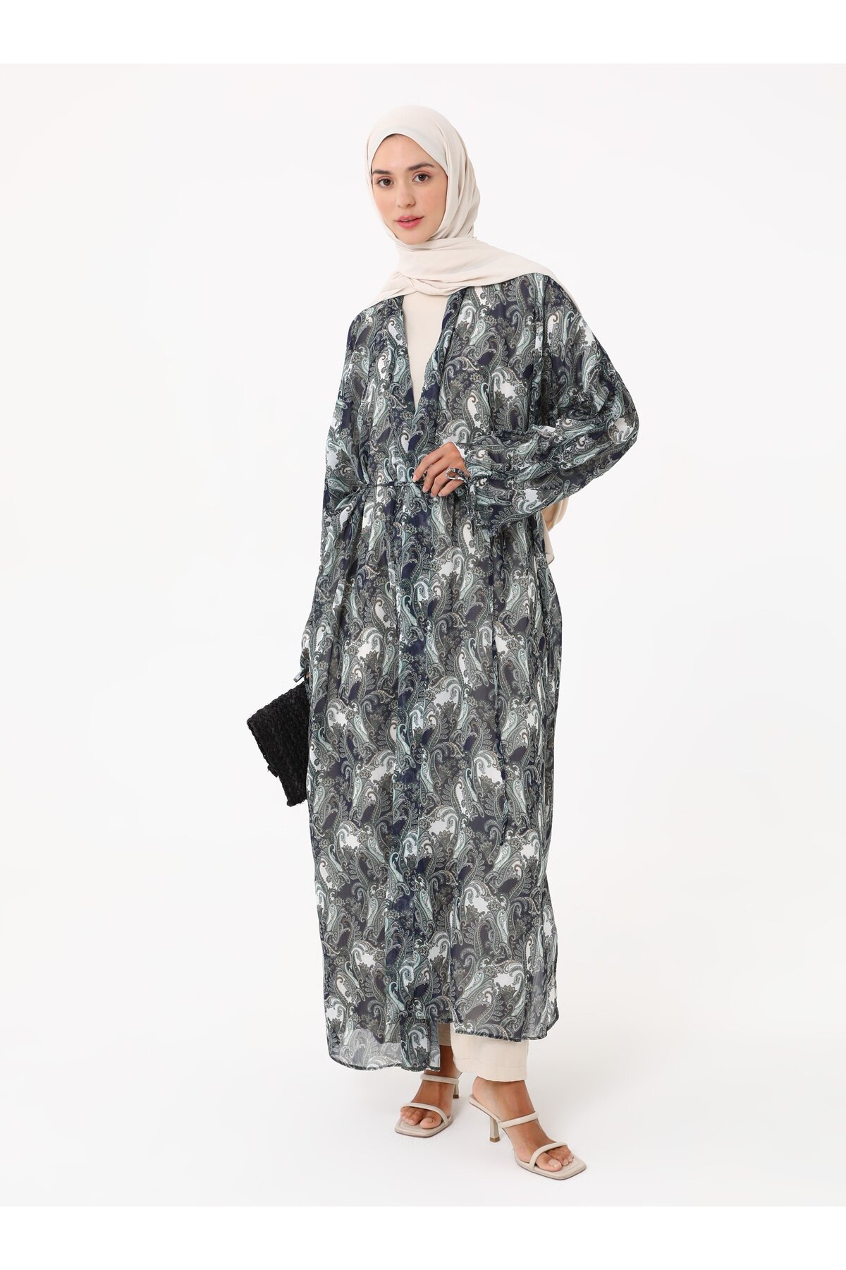 ميزات كيمونو شيفون مطبوع - منقوش باللون الأخضر- من Refka