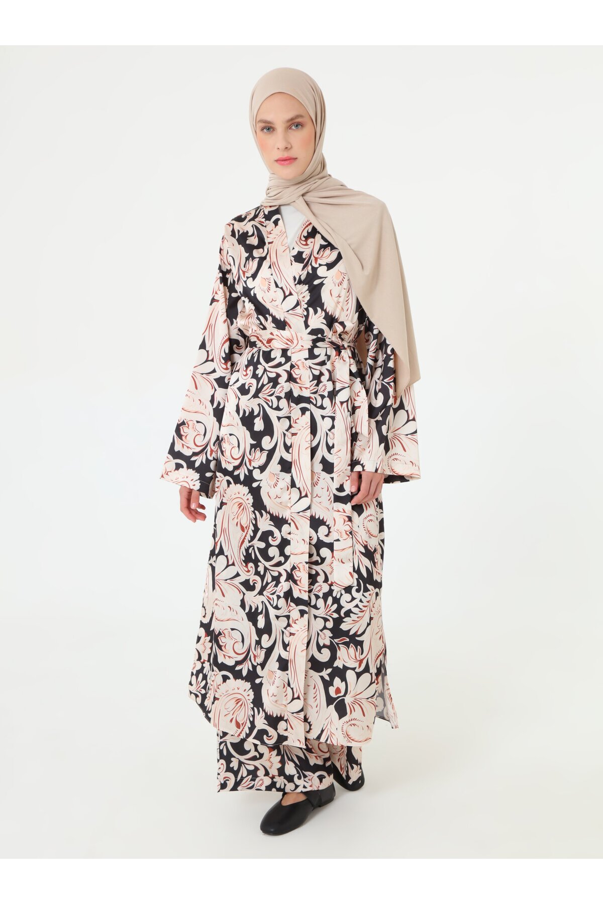 ميزات طقم بنطلون كيمونو مزين بحزام - أسود - من Refka