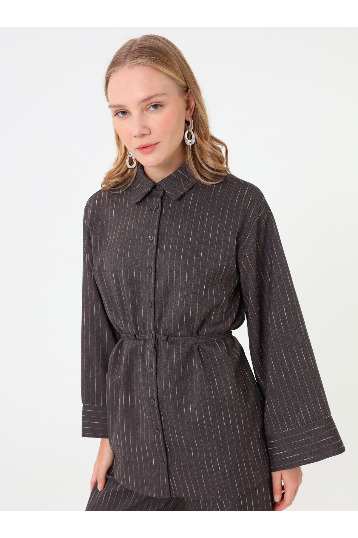 ميزات طقم قميص وبنطلون مخطط - رمادي - من Refka