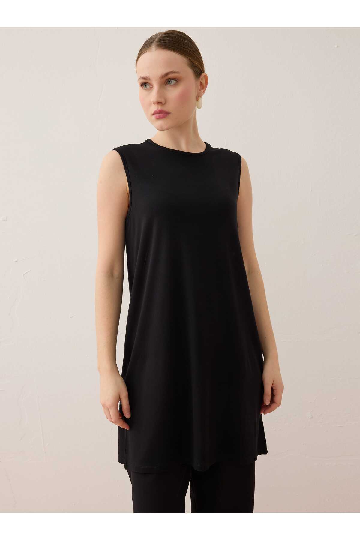 Refka فيسكوز تونيك قماشي أساسي بدون أكمام - أسود - بنين