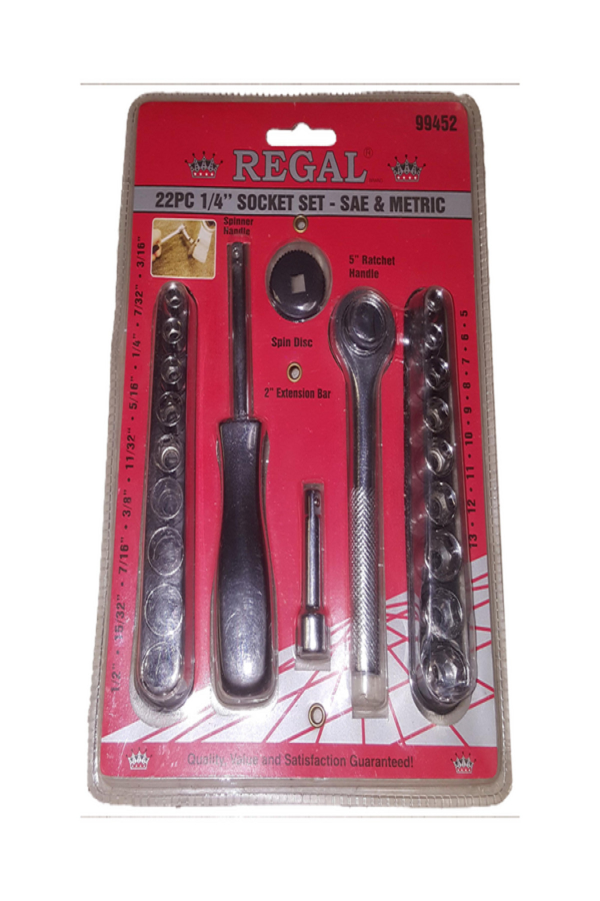 ميزات مجموعة مقابس SAE/مترية مكونة من 22 قطعة من Regal Tools