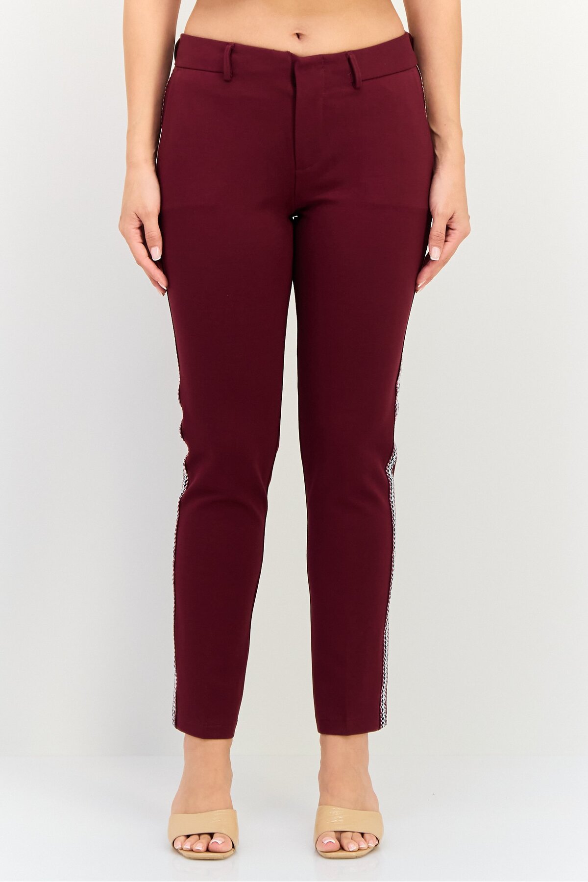ميزات بنطلون نسائي سادة بقصة عادية وساق مستقيمة، لون عنابي من Reiko