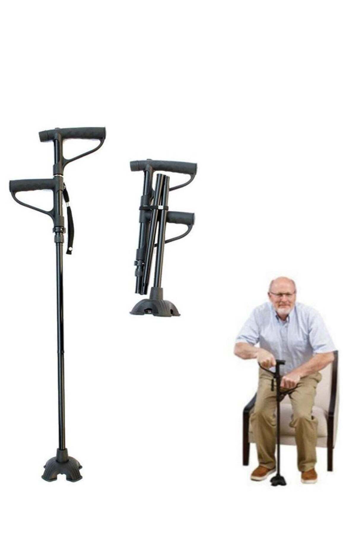 ميزات عصا المشي مع حامل ومصباح يدوي قابل للطي من Relax Smart