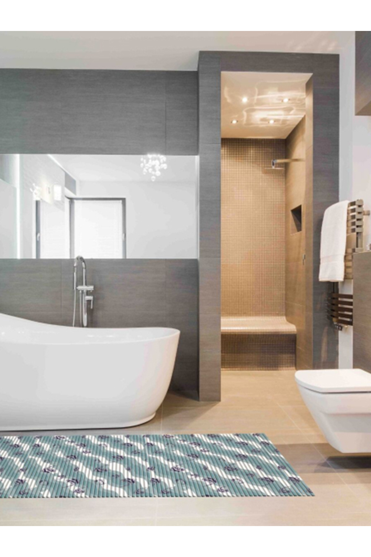 ميزات سجادة حمام مستطيلة الشكل بنمط موجة، مضادة للانزلاق، 180 × 65 سم من REVE