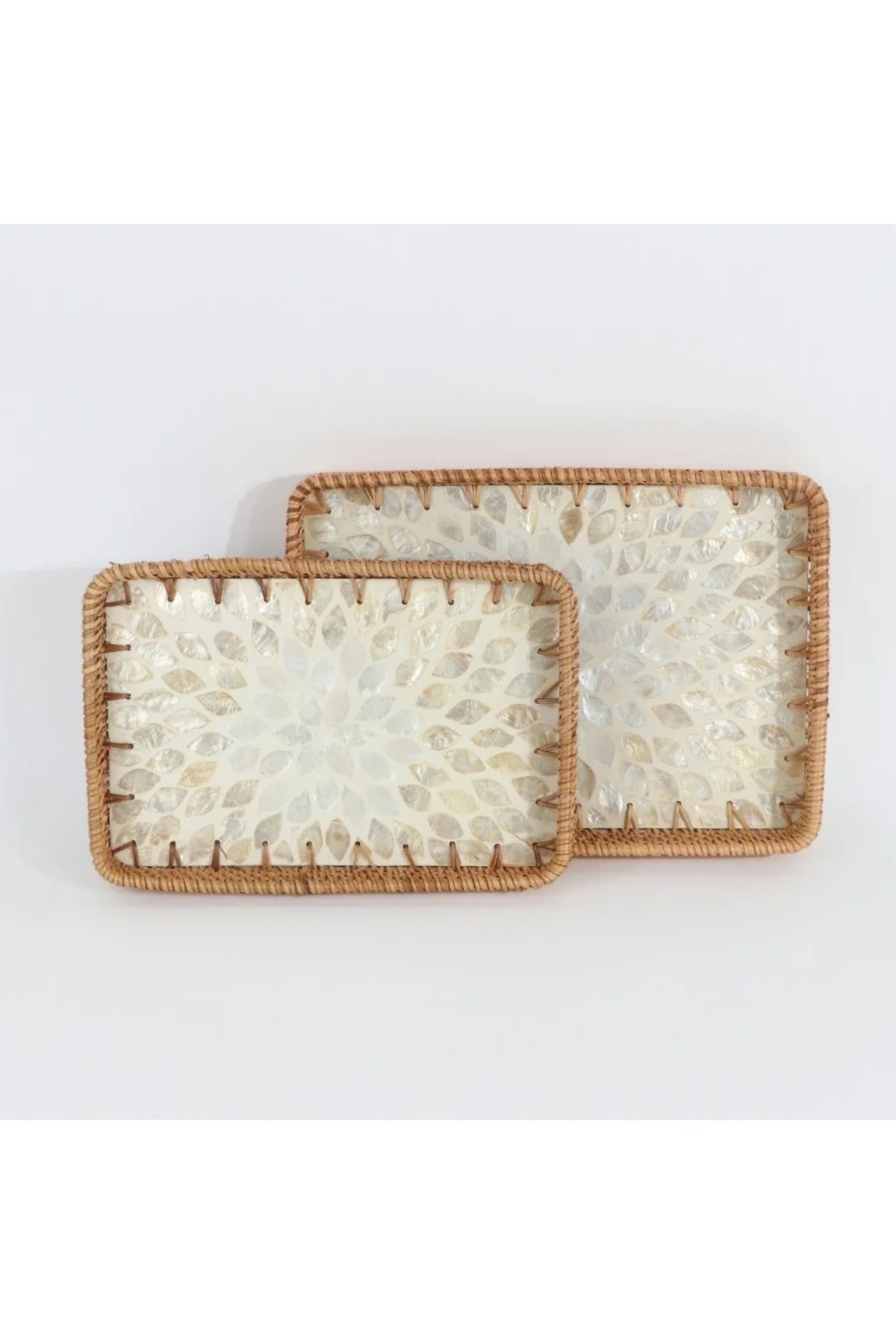 rexa طقم صينية تقديم من الخيزران بقاعدة مزخرفة – قطعتين